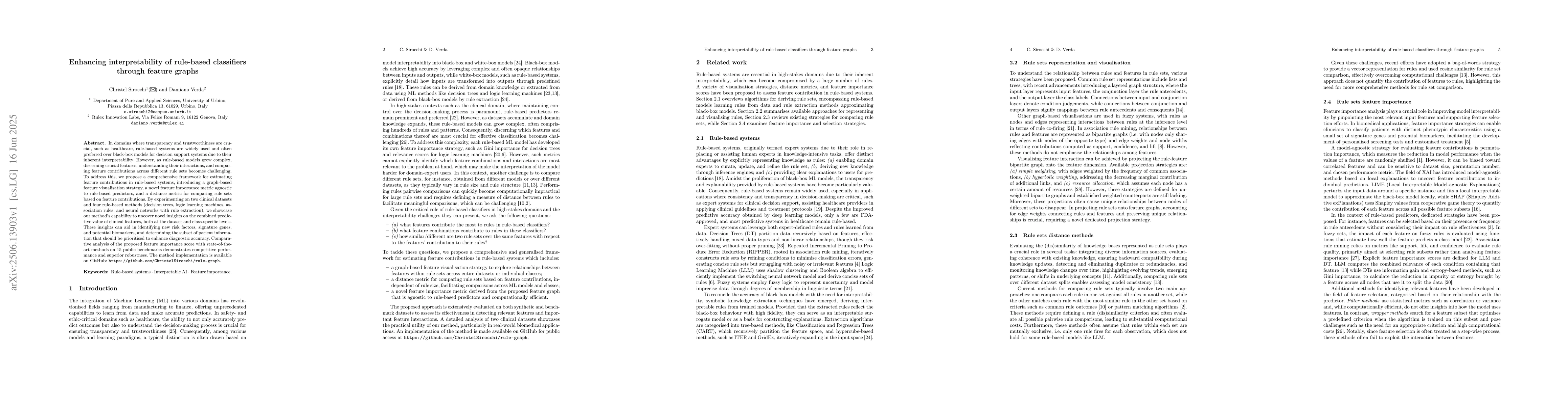 This research introduces a framework to enhance interpretability of complex rule-based classifiers using feature graphs. It presents a graph-based visualization, a feature importance metric, and a rule set comparison method. Tested on clinical datasets and various rule-based methods, it reveals new insights on feature predictive value, aiding in risk factor identification and diagnostic accuracy improvement. The method shows competitive performance and robustness on public benchmarks, with implementation available on GitHub.