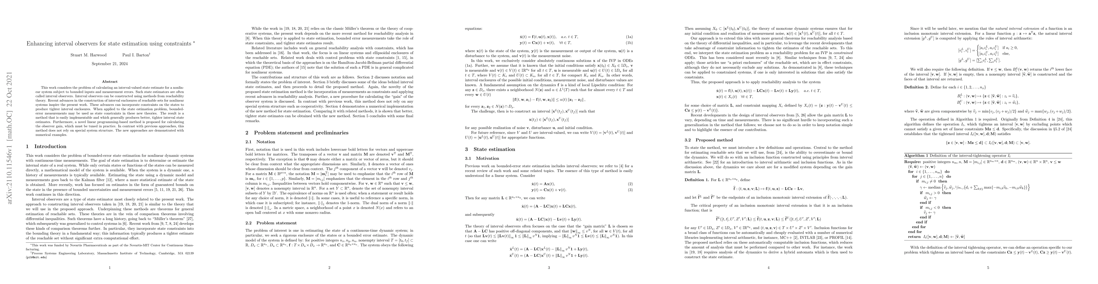 This work considers the problem of calculating an interval-valued state estimate for a nonlinear system subject to bounded inputs and measurement errors. Such state estimators are often called interval observers. Interval observers can be constructed using methods from reachability theory. Recent advances in the construction of interval enclosures of reachable sets for nonlinear systems inspire the present work. These advances can incorporate constraints on the states to produce tighter interval enclosures. When applied to the state estimation problem, bounded-error measurements may be used as state constraints in these new theories. The result is a method that is easily implementable and which generally produces better, tighter interval state estimates. Furthermore, a novel linear programming-based method is proposed for calculating the observer gain, which must be tuned in practice. In contrast with previous approaches, this method does not rely on special system structure. The new approaches are demonstrated with numerical examples.