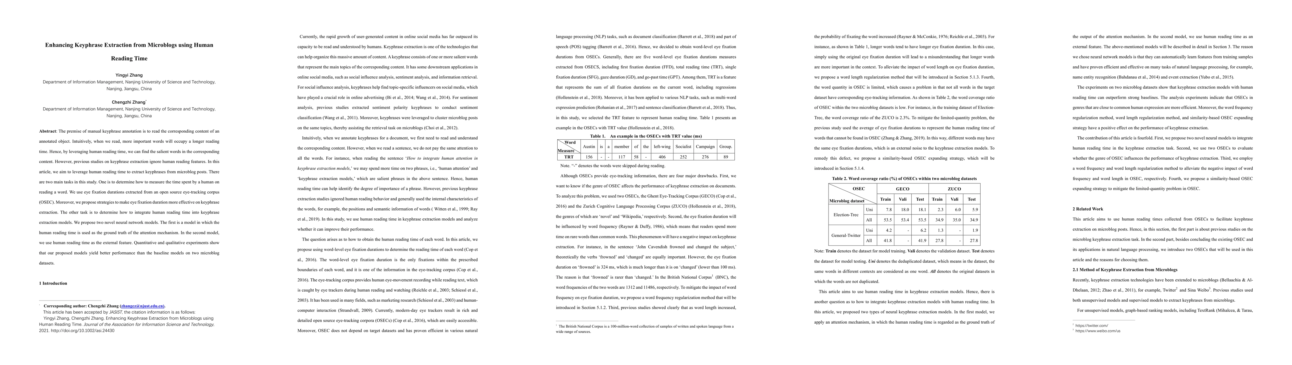 Researchers developed two neural network models that leverage human reading time to extract keyphrases from microblog posts, outperforming baseline models in performance.