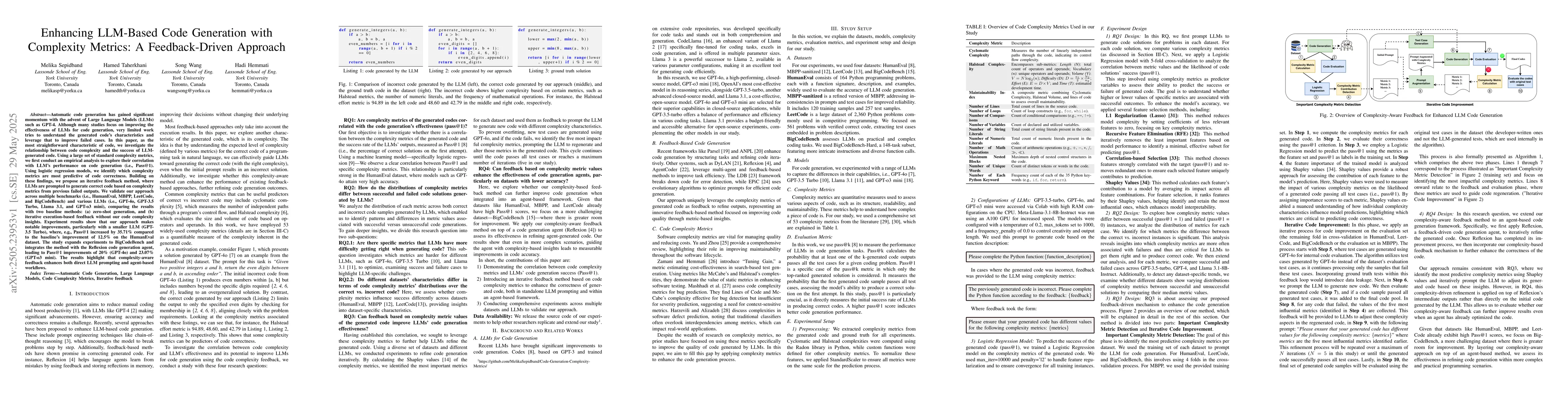The research uses empirical analysis with standard complexity metrics to correlate code generation success (Pass@1) with LLM performance. Logistic regression models identify predictive complexity metrics, leading to an iterative feedback method that prompts LLMs to generate correct code based on previous failed outputs' complexity insights.