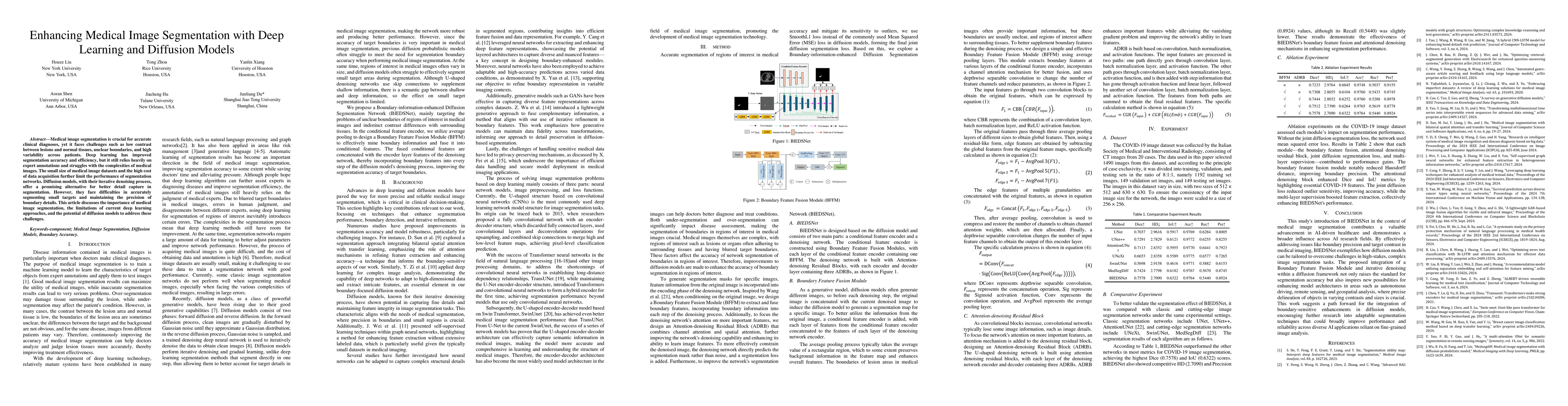 This paper explores the integration of deep learning and diffusion models to enhance medical image segmentation, addressing challenges like low contrast and boundary precision while aiming to overcome the limitations of traditional deep learning methods and the small size of medical datasets.