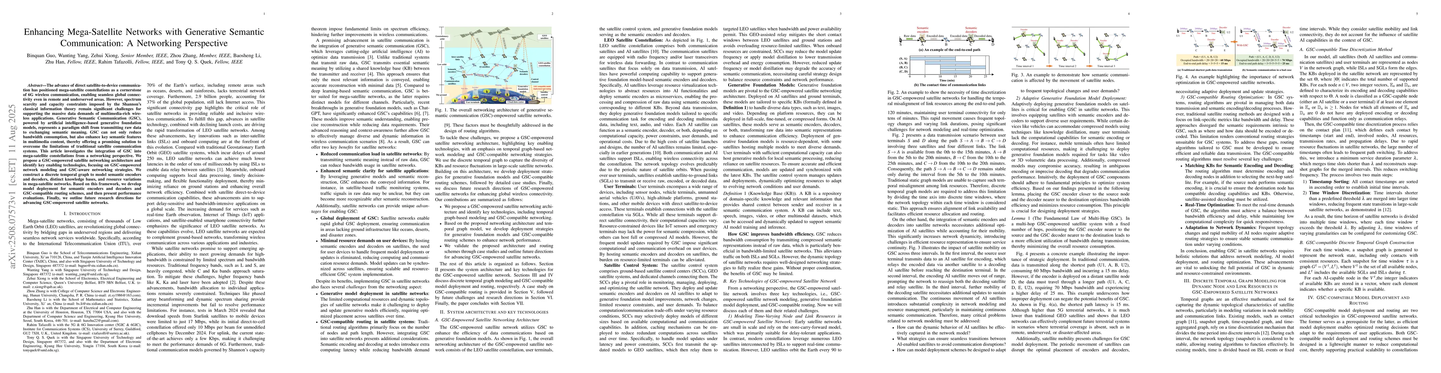 This research is significant as it explores the integration of Generative Semantic Communication (GSC) in mega-satellite constellations, aiming to enhance bandwidth efficiency and support multimedia-rich applications in 6G wireless communication.