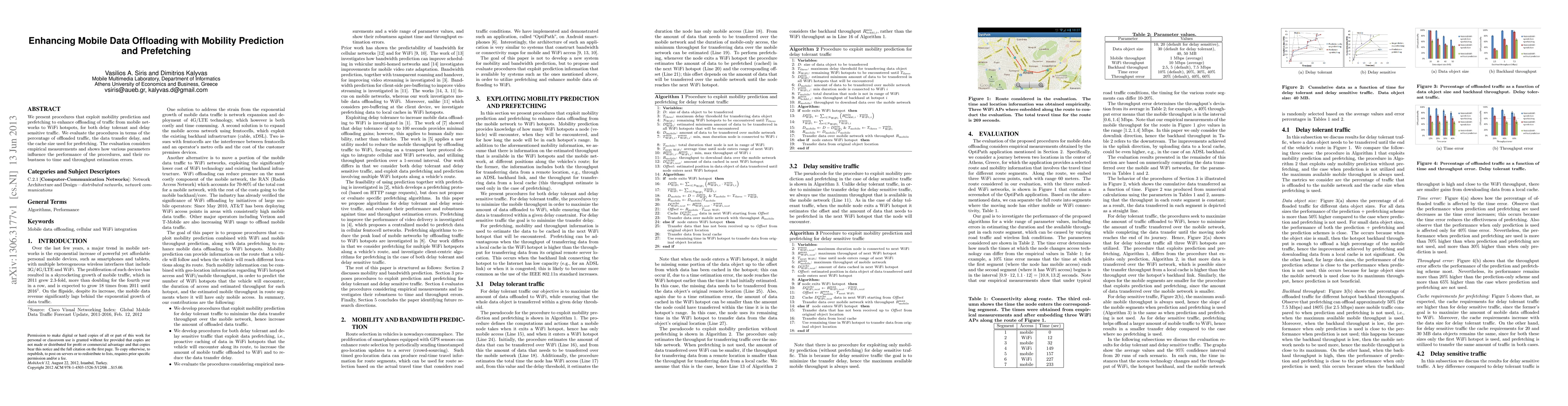 This paper proposes methods using mobility prediction and prefetching to improve mobile data offloading to WiFi hotspots, balancing delay-tolerant and delay-sensitive traffic. Evaluations show how these techniques affect offloaded traffic percentage, data transfer delay, and cache usage, highlighting their robustness against estimation errors.