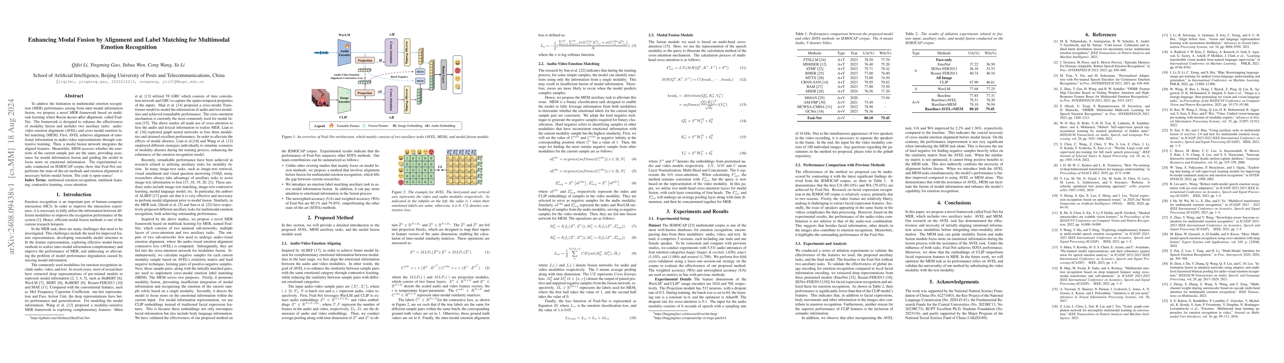 This paper proposes Foal-Net, a novel multimodal emotion recognition framework based on multitask learning, to enhance modal fusion. It employs audio-video emotion alignment and cross-modal emotion label matching to improve fusion efficiency, achieving superior performance over existing methods on the IEMOCAP corpus.
