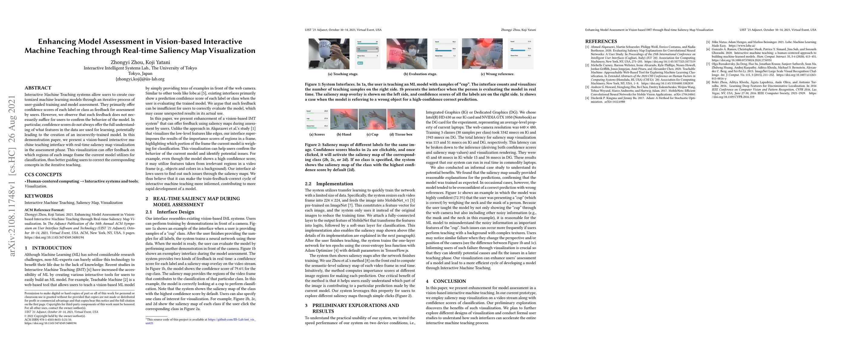 This paper introduces an interactive machine teaching system that enhances model assessment by incorporating real-time saliency map visualization. The visualization provides users with insights into which image regions the model uses for classification, thereby improving the accuracy of user-guided training and model correction.