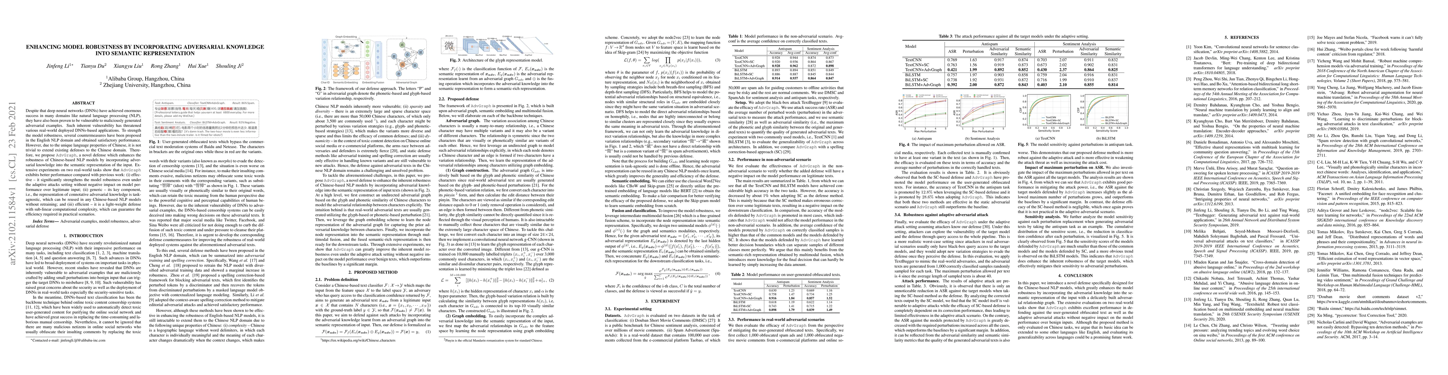 This paper proposes AdvGraph, a novel defense mechanism to enhance the robustness of Chinese NLP models by integrating adversarial knowledge into semantic representation. AdvGraph demonstrates superior performance in strengthening model robustness without affecting performance on legitimate inputs, and its key component is generic and efficient, making it suitable for practical applications.