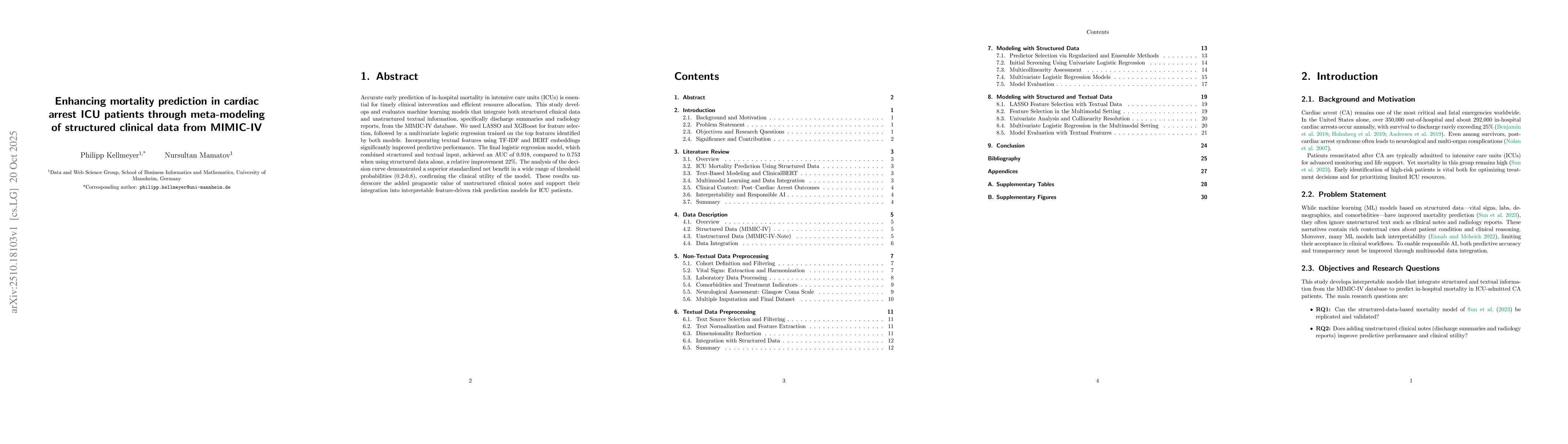 This research advances ICU mortality prediction by integrating structured and unstructured clinical data, potentially improving patient outcomes through earlier risk stratification.
