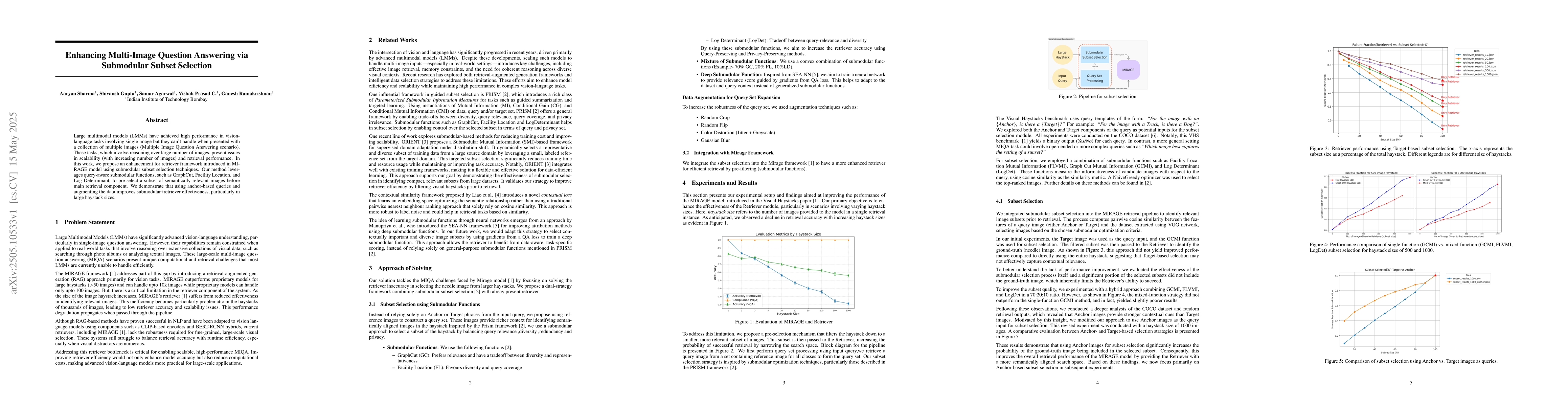 A research paper proposes a method to enhance multi-image question answering using submodular subset selection techniques, improving performance in large multimodal models.