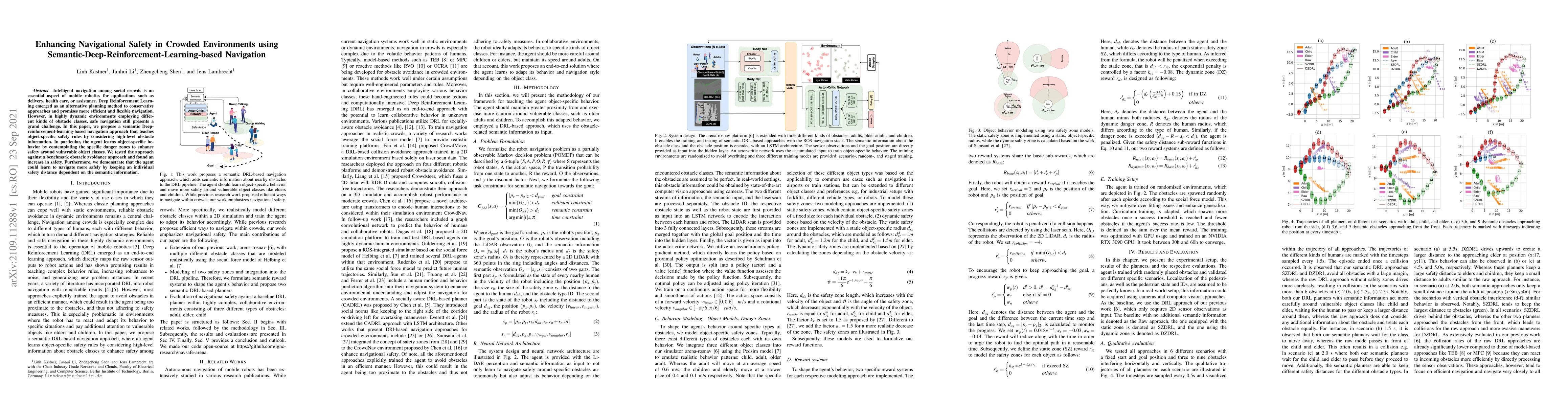 This work stands out by focusing on object-specific safety rules and danger zones, allowing the agent to learn and adapt its behavior depending on the object class, which is not commonly addressed in existing DRL-based navigation approaches.