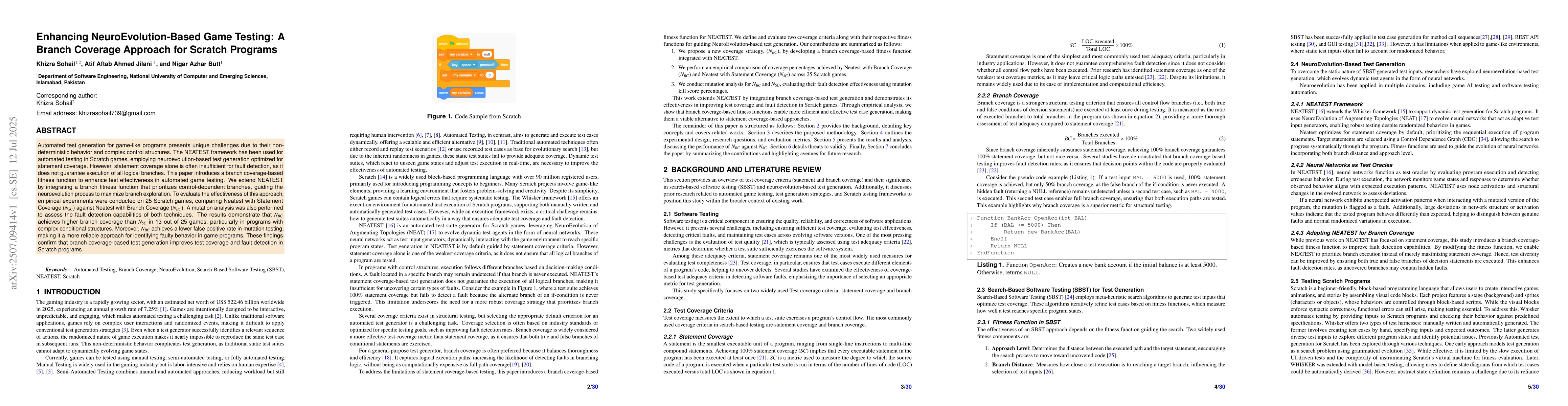 Automated test generation for game-like programs presents unique challenges due to their non-deterministic behavior and complex control structures. The NEATEST framework has been used for automated testing in Scratch games, employing neuroevolution-based test generation optimized for statement coverage. However, statement coverage alone is often insufficient for fault detection, as it does not guarantee execution of all logical branches. This paper introduces a branch coverage-based fitness function to enhance test effectiveness in automated game testing. We extend NEATEST by integrating a branch fitness function that prioritizes control-dependent branches, guiding the neuroevolution process to maximize branch exploration. To evaluate the effectiveness of this approach, empirical experiments were conducted on 25 Scratch games, comparing Neatest with Statement Coverage (NSC) against Neatest with Branch Coverage (NBC). A mutation analysis was also performed to assess the fault detection capabilities of both techniques. The results demonstrate that NBC achieves higher branch coverage than NSC in 13 out of 25 games, particularly in programs with complex conditional structures. Moreover, NBC achieves a lower false positive rate in mutation testing, making it a more reliable approach for identifying faulty behavior in game programs. These findings confirm that branch coverage-based test generation improves test coverage and fault detection in Scratch programs.