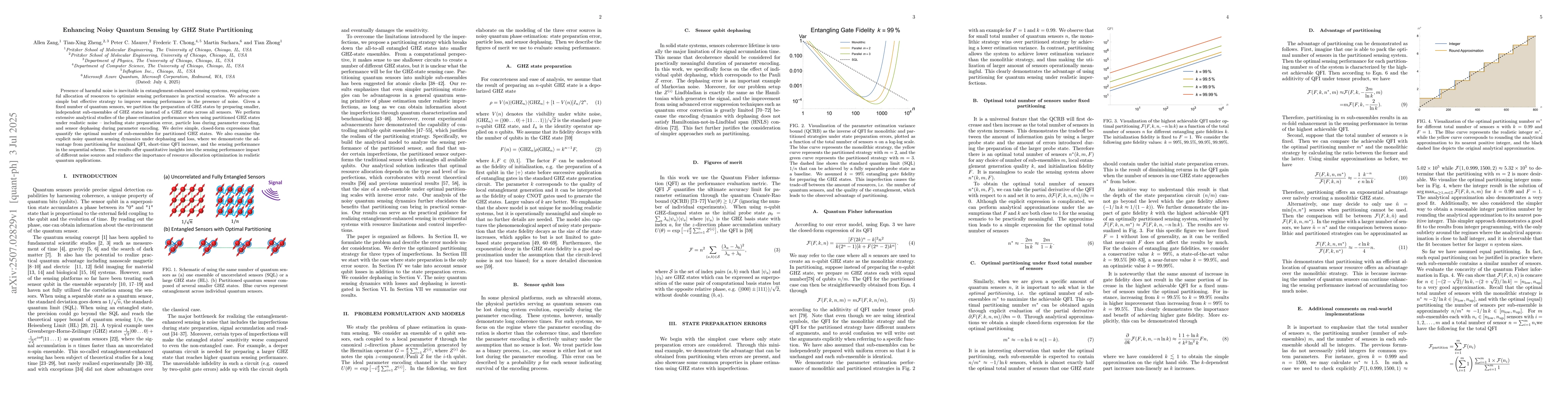 Presence of harmful noise is inevitable in entanglement-enhanced sensing systems, requiring careful allocation of resources to optimize sensing performance in practical scenarios. We advocate a simple but effective strategy to improve sensing performance in the presence of noise. Given a fixed number of quantum sensors, we partition the preparation of GHZ states by preparing smaller, independent sub-ensembles of GHZ states instead of a GHZ state across all sensors. We perform extensive analytical studies of the phase estimation performance when using partitioned GHZ states under realistic noise -- including state preparation error, particle loss during parameter encoding, and sensor dephasing during parameter encoding. We derive simple, closed-form expressions that quantify the optimal number of sub-ensembles for partitioned GHZ states. We also examine the explicit noisy quantum sensing dynamics under dephasing and loss, where we demonstrate the advantage from partitioning for maximal QFI, short-time QFI increase, and the sensing performance in the sequential scheme. The results offer quantitative insights into the sensing performance impact of different noise sources and reinforce the importance of resource allocation optimization in realistic quantum applications.
