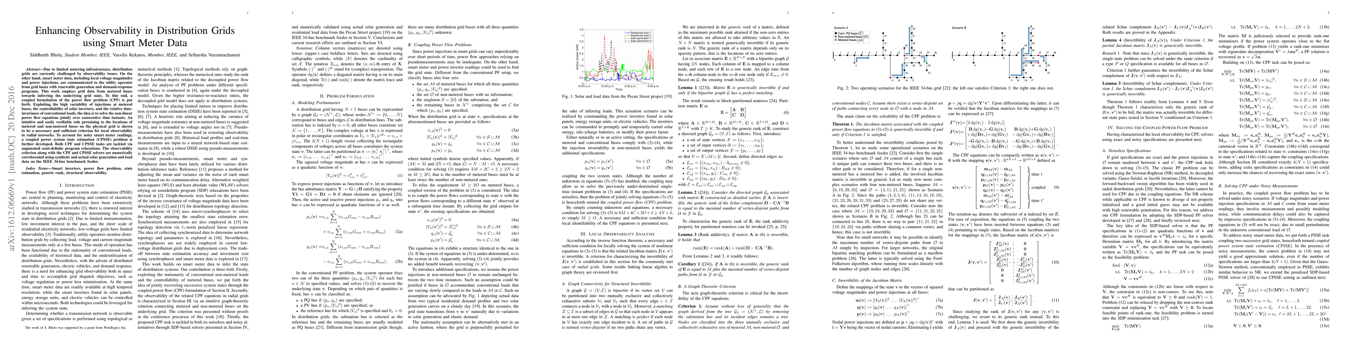 Due to limited metering infrastructure, distribution grids are currently challenged by observability issues. On the other hand, smart meter data, including local voltage magnitudes and power injections, are communicated to the utility operator from grid buses with renewable generation and demand-response programs. This work employs grid data from metered buses towards inferring the underlying grid state. To this end, a coupled formulation of the power flow problem (CPF) is put forth. Exploiting the high variability of injections at metered buses, the controllability of solar inverters, and the relative time-invariance of conventional loads, the idea is to solve the non-linear power flow equations jointly over consecutive time instants. An intuitive and easily verifiable rule pertaining to the locations of metered and non-metered buses on the physical grid is shown to be a necessary and sufficient criterion for local observability in radial networks. To account for noisy smart meter readings, a coupled power system state estimation (CPSSE) problem is further developed. Both CPF and CPSSE tasks are tackled via augmented semi-definite program relaxations. The observability criterion along with the CPF and CPSSE solvers are numerically corroborated using synthetic and actual solar generation and load data on the IEEE 34-bus benchmark feeder.