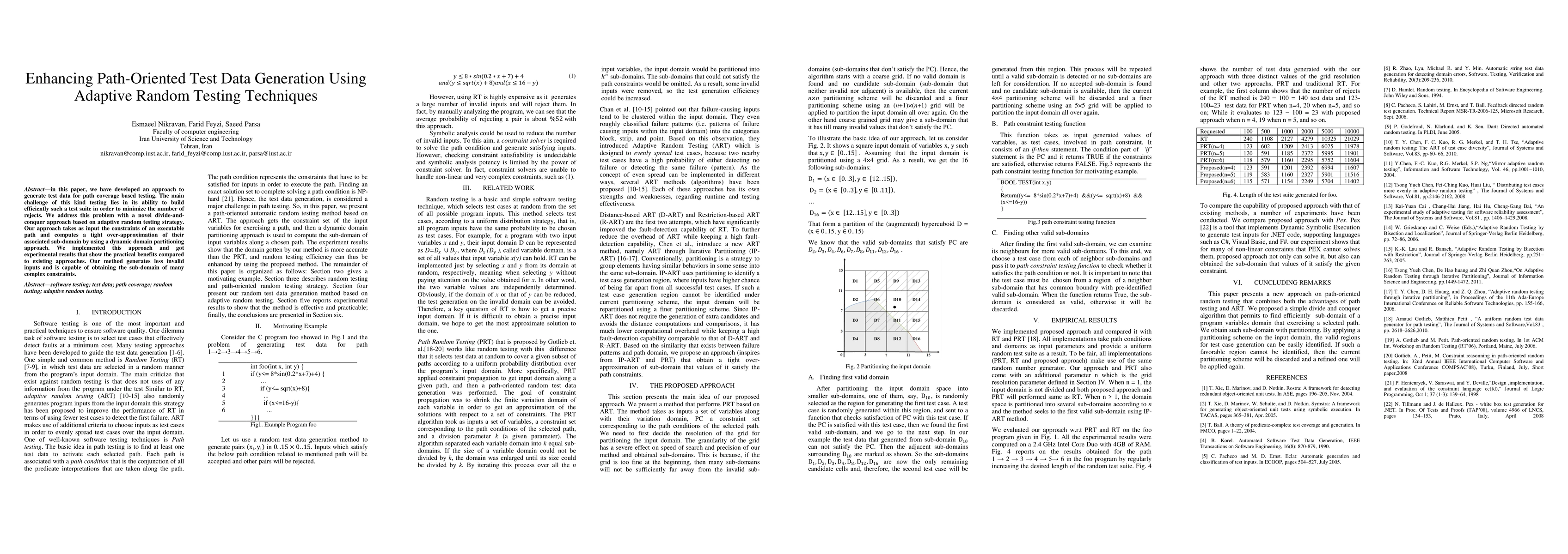 In this paper, we have developed an approach to generate test data for path coverage based testing. The main challenge of this kind testing lies in its ability to build efficiently such a test suite in order to minimize the number of rejects. We address this problem with a novel divide-and-conquer approach based on adaptive random testing strategy. Our approach takes as input the constraints of an executable path and computes a tight over-approximation of their associated sub-domain by using a dynamic domain partitioning approach. We implemented this approach and got experimental results that show the practical benefits compared to existing approaches. Our method generates less invalid inputs and is capable of obtaining the sub-domain of many complex constraints.