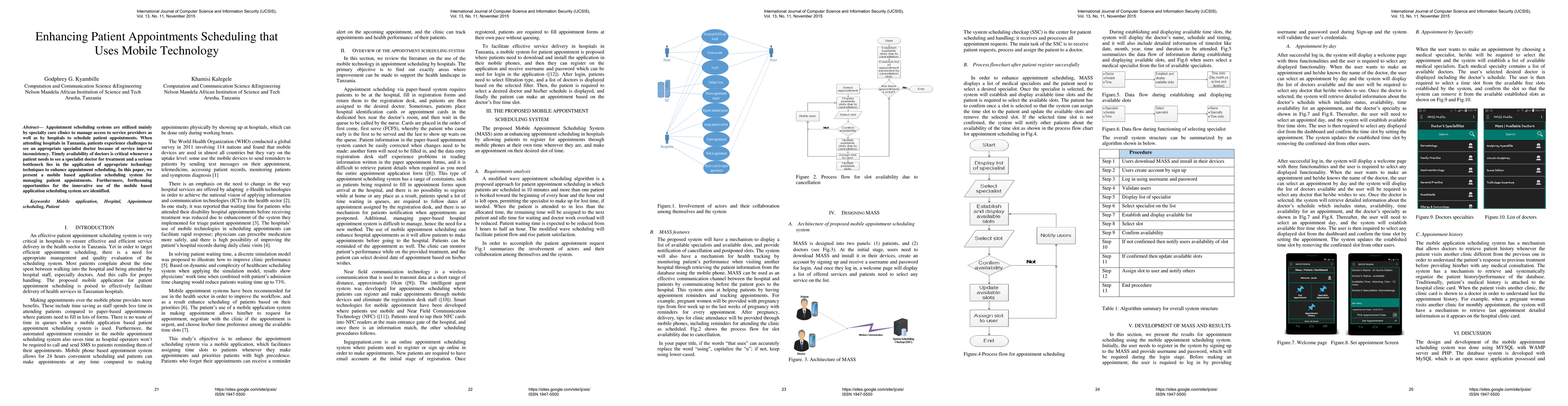 This paper introduces a mobile application designed to enhance appointment scheduling in Tanzanian hospitals, aiming to address the inconsistency in service intervals and improve access to specialist doctors. The study also explores future opportunities for innovative use of the mobile scheduling system.