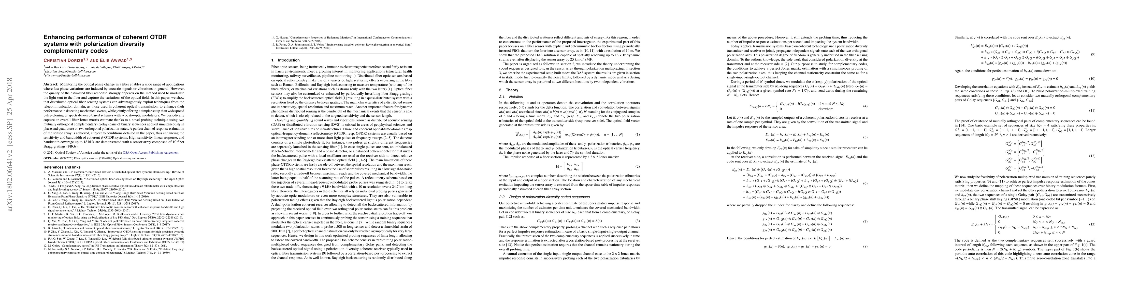 This paper proposes a novel technique using complementary codes and polarization diversity to enhance the performance of coherent optical time-domain reflectometer (OTDR) systems. The method employs orthogonal Golay pairs to capture fiber Jones matrix estimates, achieving high sensitivity and bandwidth up to 18 kHz for detecting mechanical events.
