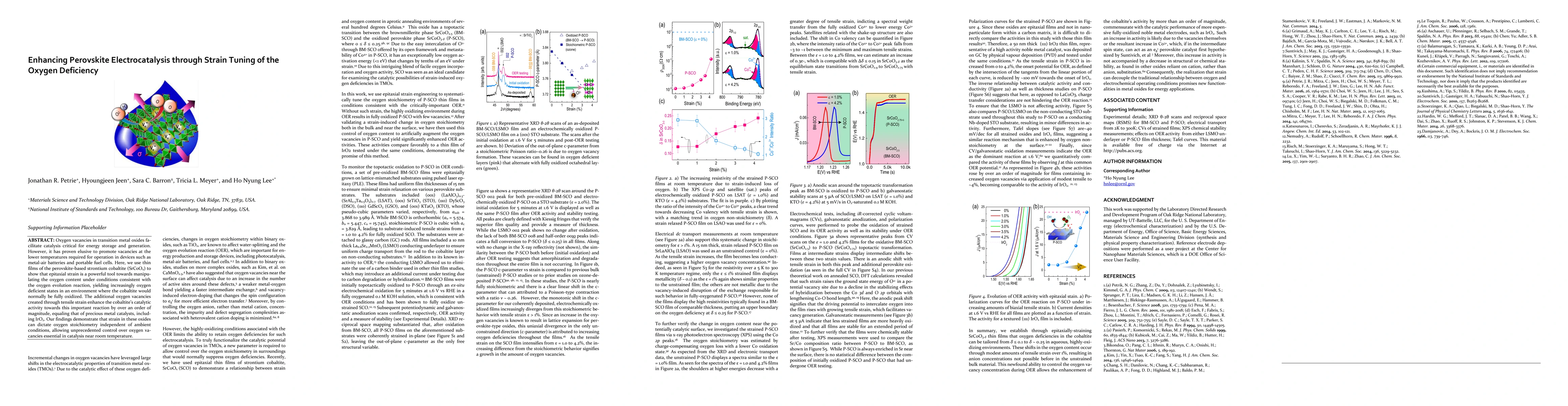 This paper demonstrates that epitaxial strain in perovskite-based strontium cobaltite thin films can manipulate oxygen vacancies at lower temperatures, significantly enhancing catalytic activity for the oxygen evolution reaction, comparable to that of precious metal catalysts. This strain-induced control over oxygen stoichiometry offers unprecedented manipulation of oxygen vacancies essential for catalysis near room temperature.