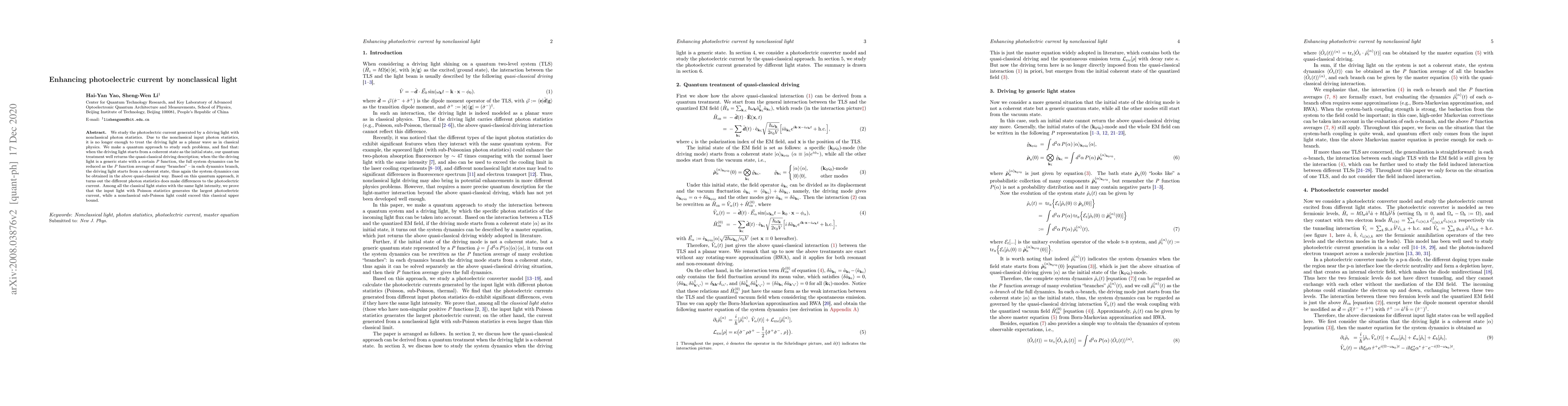 The work introduces a novel perspective on how nonclassical light statistics influence photoelectric current, surpassing classical bounds set by Poisson statistics.