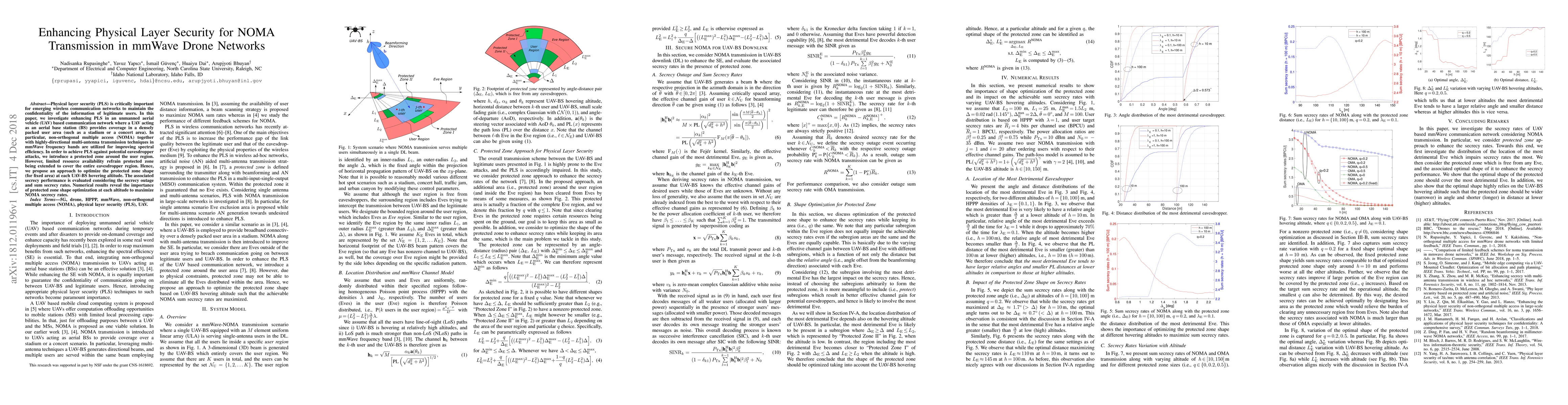 This paper explores enhancing physical layer security in mmWave drone networks using NOMA and directional multi-antenna transmission. It proposes optimizing the shape of a protected zone around users to maximize secrecy rates against eavesdroppers, demonstrating the importance of this optimization for effective security.