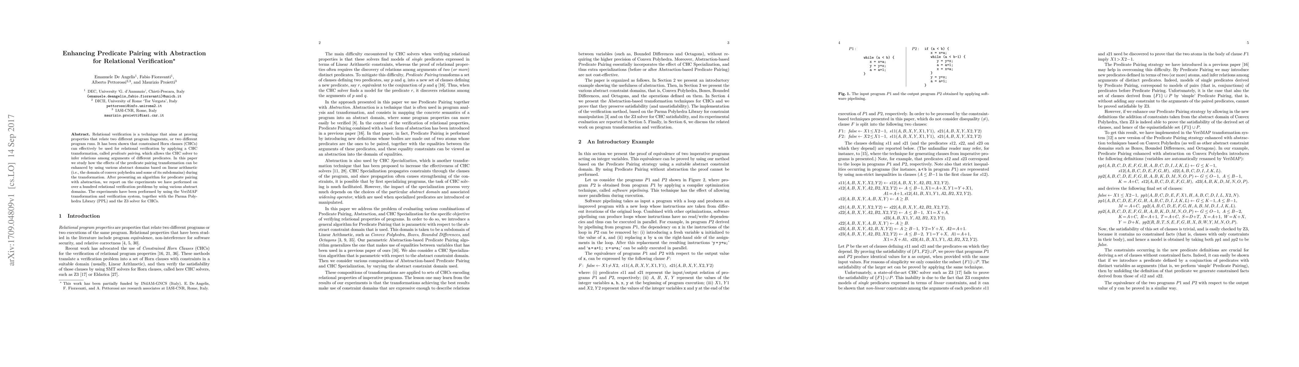 Relational verification is a technique that aims at proving properties that relate two different program fragments, or two different program runs. It has been shown that constrained Horn clauses (CHCs) can effectively be used for relational verification by applying a CHC transformation, called predicate pairing, which allows the CHC solver to infer relations among arguments of different predicates. In this paper we study how the effects of the predicate pairing transformation can be enhanced by using various abstract domains based on linear arithmetic (i.e., the domain of convex polyhedra and some of its subdomains) during the transformation. After presenting an algorithm for predicate pairing with abstraction, we report on the experiments we have performed on over a hundred relational verification problems by using various abstract domains. The experiments have been performed by using the VeriMAP transformation and verification system, together with the Parma Polyhedra Library (PPL) and the Z3 solver for CHCs.