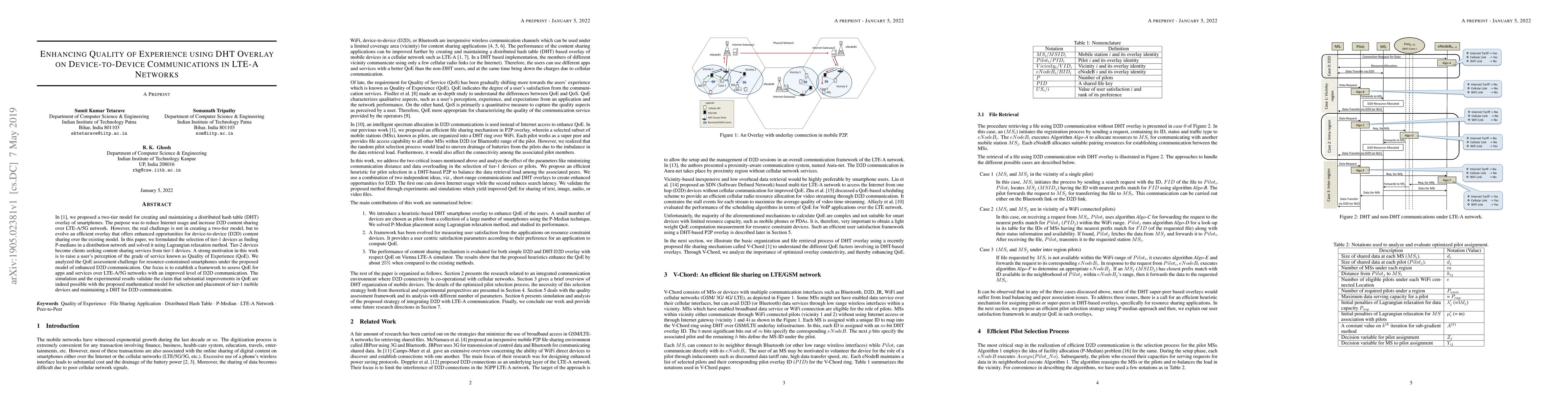 This paper proposes a mathematical model for selecting tier-1 devices in a DHT overlay to enhance D2D content sharing in LTE-A/5G networks, aiming to improve Quality of Experience (QoE). The model uses Lagrangian relaxation to optimize the placement of tier-1 devices, and simulation results show significant QoE improvements.