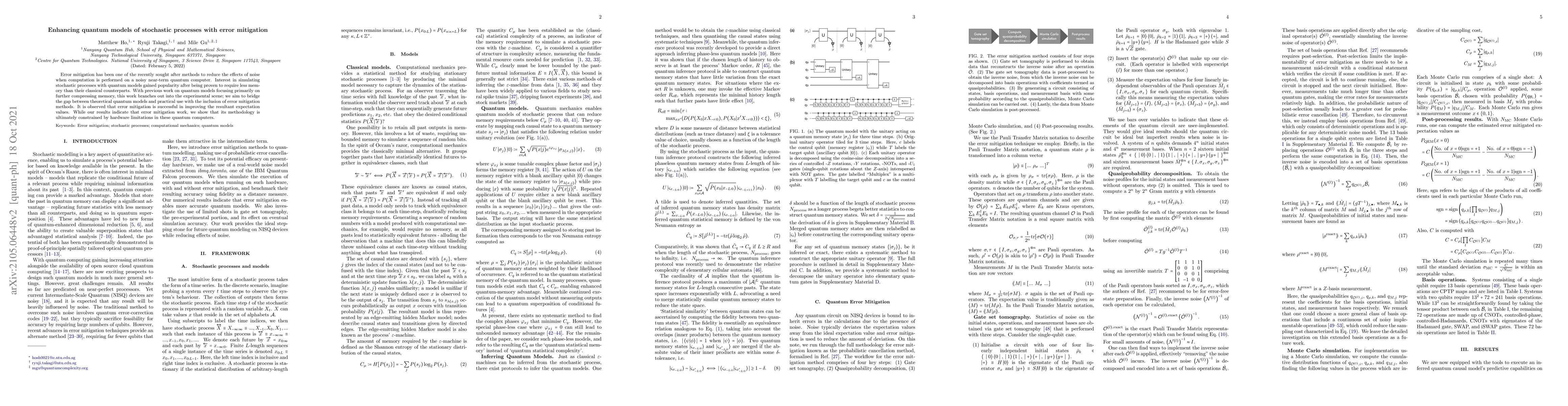 This paper explores the integration of error mitigation techniques to enhance quantum models for simulating stochastic processes, aiming to bridge theoretical models with practical use on noisy near-term quantum computers. While error mitigation improves expectation values, it is ultimately limited by hardware constraints.