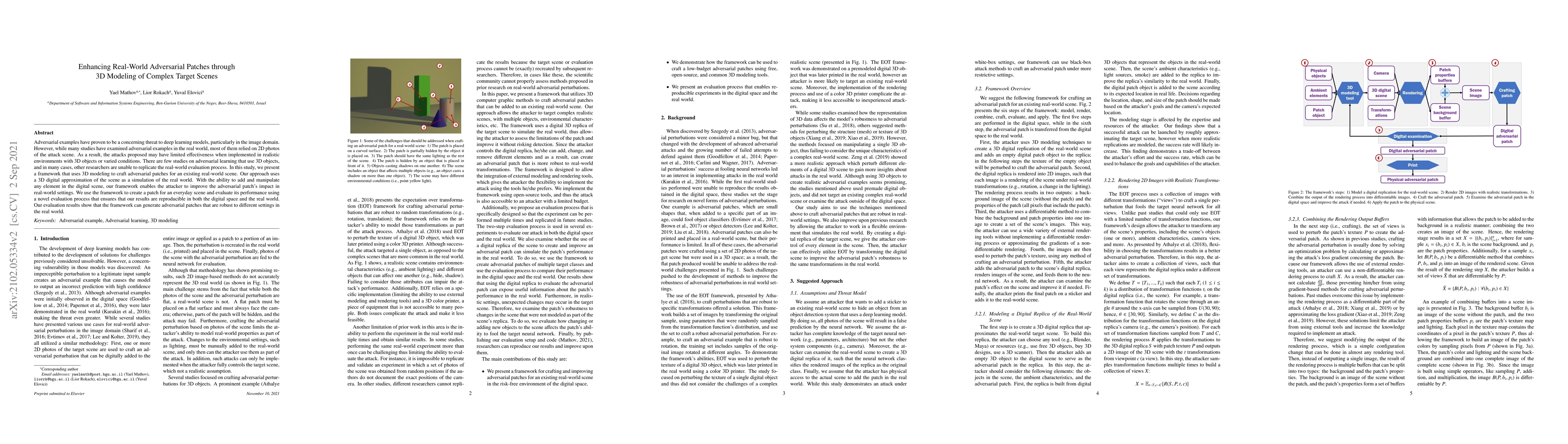 Adversarial examples have proven to be a concerning threat to deep learning models, particularly in the image domain. However, while many studies have examined adversarial examples in the real world, most of them relied on 2D photos of the attack scene. As a result, the attacks proposed may have limited effectiveness when implemented in realistic environments with 3D objects or varied conditions. There are few studies on adversarial learning that use 3D objects, and in many cases, other researchers are unable to replicate the real-world evaluation process. In this study, we present a framework that uses 3D modeling to craft adversarial patches for an existing real-world scene. Our approach uses a 3D digital approximation of the scene as a simulation of the real world. With the ability to add and manipulate any element in the digital scene, our framework enables the attacker to improve the adversarial patch's impact in real-world settings. We use the framework to create a patch for an everyday scene and evaluate its performance using a novel evaluation process that ensures that our results are reproducible in both the digital space and the real world. Our evaluation results show that the framework can generate adversarial patches that are robust to different settings in the real world.