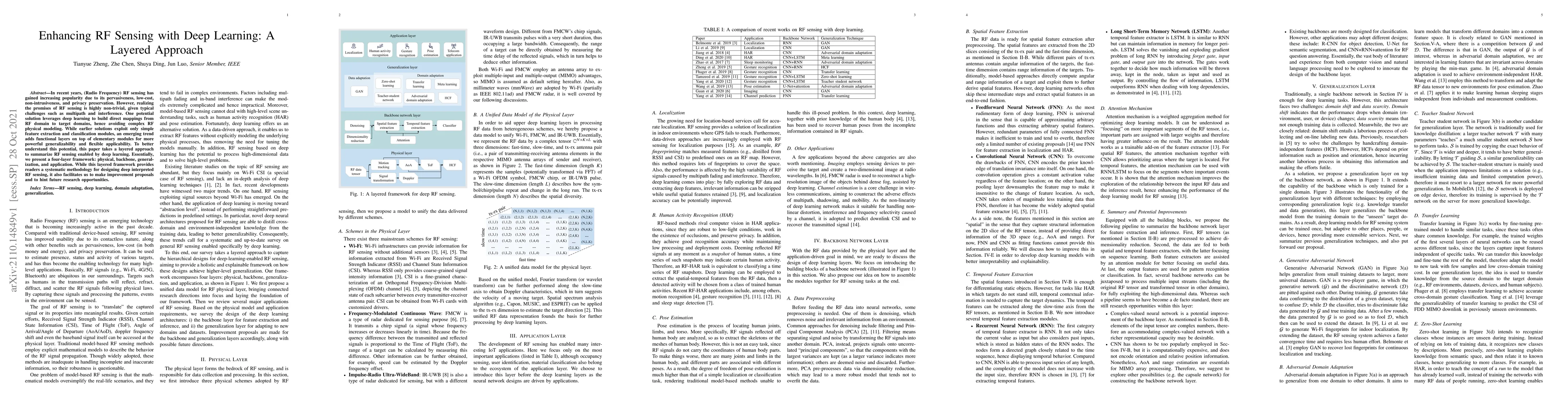 This paper proposes a four-layer framework to enhance RF sensing using deep learning, addressing challenges like multipath and interference. The framework includes physical, backbone, generalization, and application layers, offering a systematic methodology for designing and improving RF sensing systems.