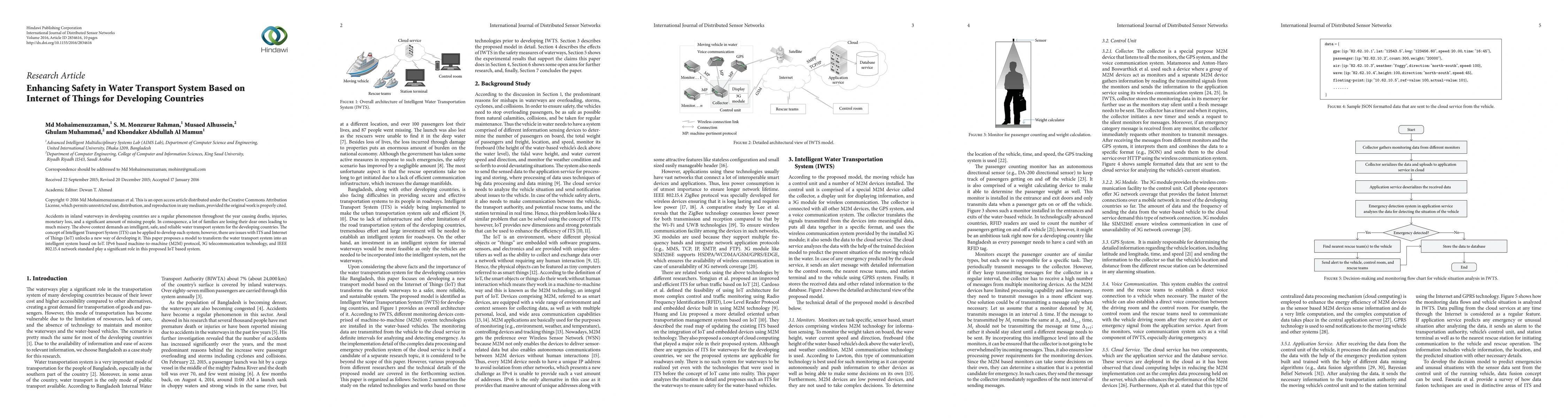 This paper proposes an IoT-based model to enhance safety in inland waterways in developing countries, addressing frequent accidents and associated losses. The proposed system leverages IPv6, 3G, and IEEE 802.15.4 to create an intelligent transport system, aiming to improve safety and reliability.