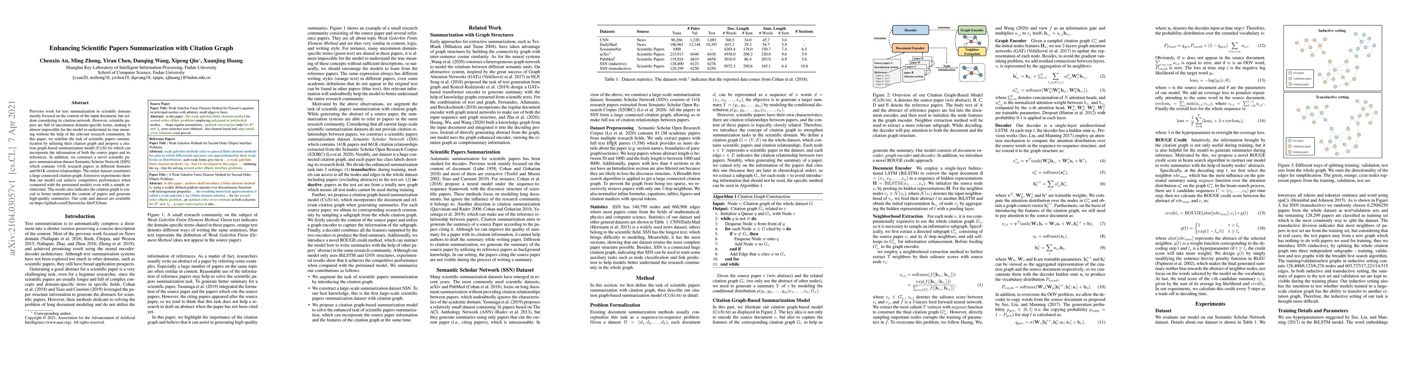 This paper introduces a summarization model, CGSum, that leverages citation graphs to enhance scientific paper summarization, showing competitive performance compared to pretrained models. It also presents the Semantic Scholar Network (SSN) dataset, containing 141K papers and 661K citation relationships, demonstrating the importance of citation networks in understanding paper content and generating high-quality summaries.