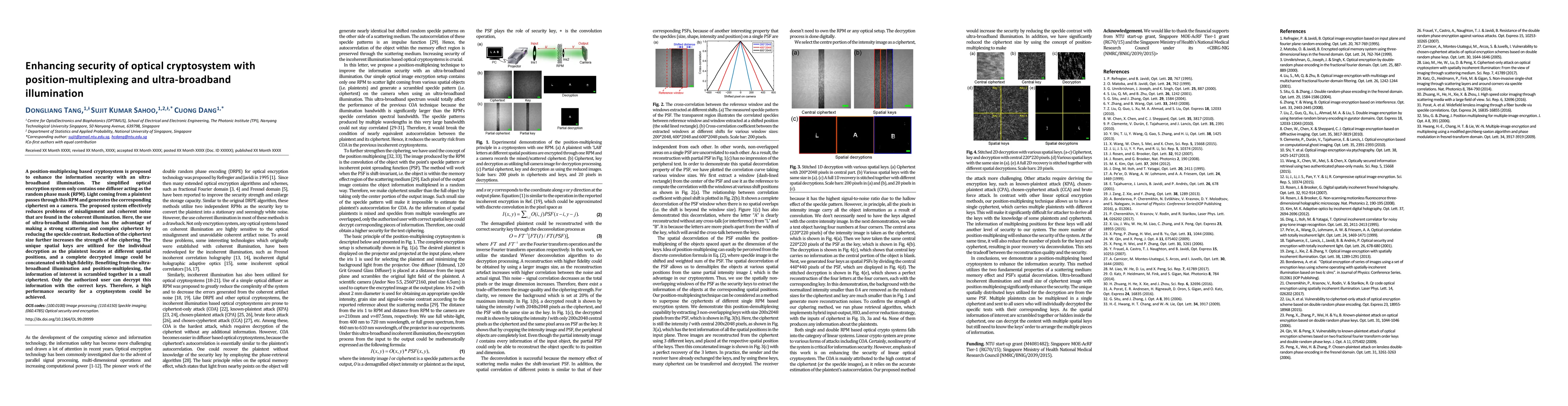 This paper proposes a position-multiplexing optical cryptosystem using ultra-broadband illumination to enhance security by scrambling information into a small ciphertext, reducing speckle contrast, and utilizing unique spatial keys for decryption. The simplified system with a single diffuser as the random phase mask mitigates misalignment and coherent noise issues.