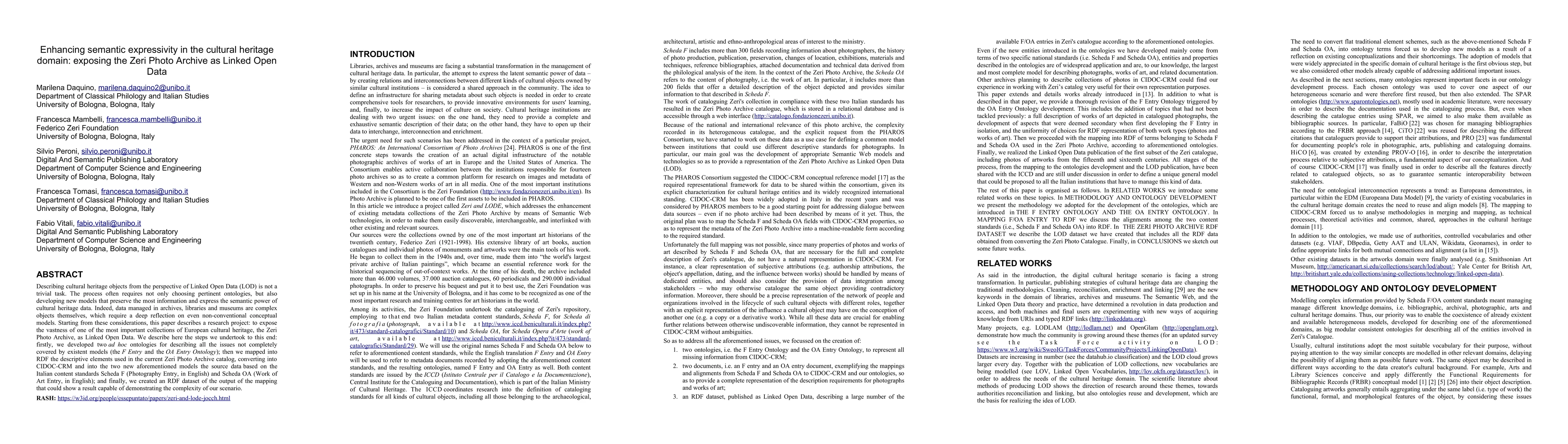 Describing cultural heritage objects from the perspective of Linked Open Data (LOD) is not a trivial task. The process often requires not only choosing pertinent ontologies, but also developing new models that preserve the most information and express the semantic power of cultural heritage data. Indeed, data managed in archives, libraries and museums are complex objects themselves, which require a deep reflection on even non-conventional conceptual models. Starting from these considerations, this paper describes a research project: to expose the vastness of one of the most important collections of European cultural heritage, the Zeri Photo Archive, as Linked Open Data. We describe here the steps we undertook to this end: firstly, we developed two ad hoc ontologies for describing all the issues not completely covered by existent models (the F Entry and the OA Entry Ontology); then we mapped into RDF the descriptive elements used in the current Zeri Photo Archive catalog, converting into CIDOC-CRM and into the two new aforementioned models the source data based on the Italian content standards Scheda F (Photography Entry, in English) and Scheda OA (Work of Art Entry, in English); and finally, we created an RDF dataset of the output of the mapping that could show a result capable of demonstrating the complexity of our scenario.