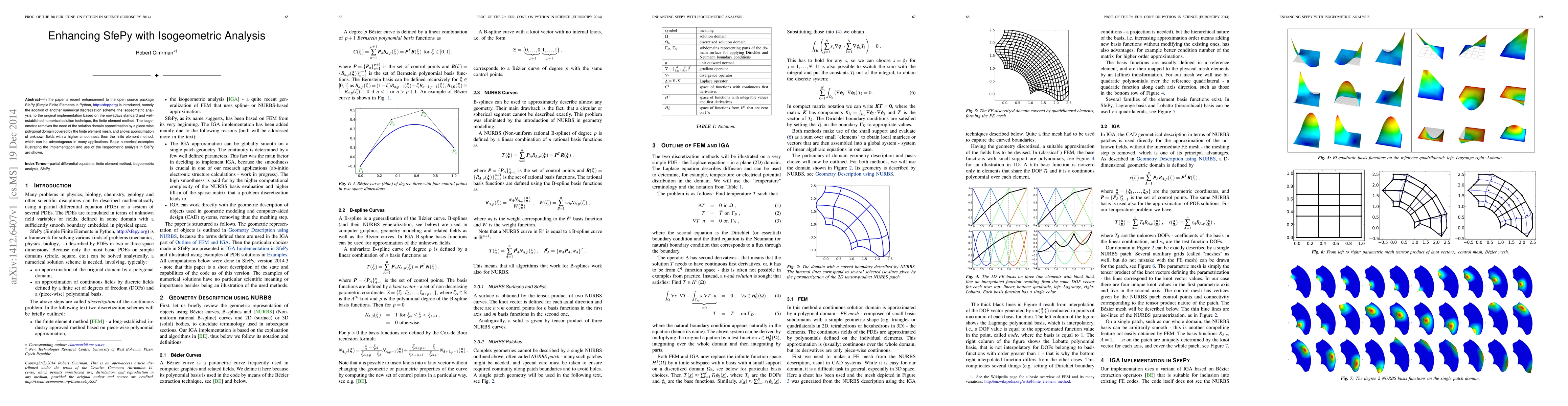 This paper enhances the open-source package SfePy by integrating isogeometric analysis, a method that eliminates the need for mesh approximation and allows for higher smoothness in field approximations compared to the finite element method. Basic examples demonstrate the implementation and benefits of this new approach in SfePy.