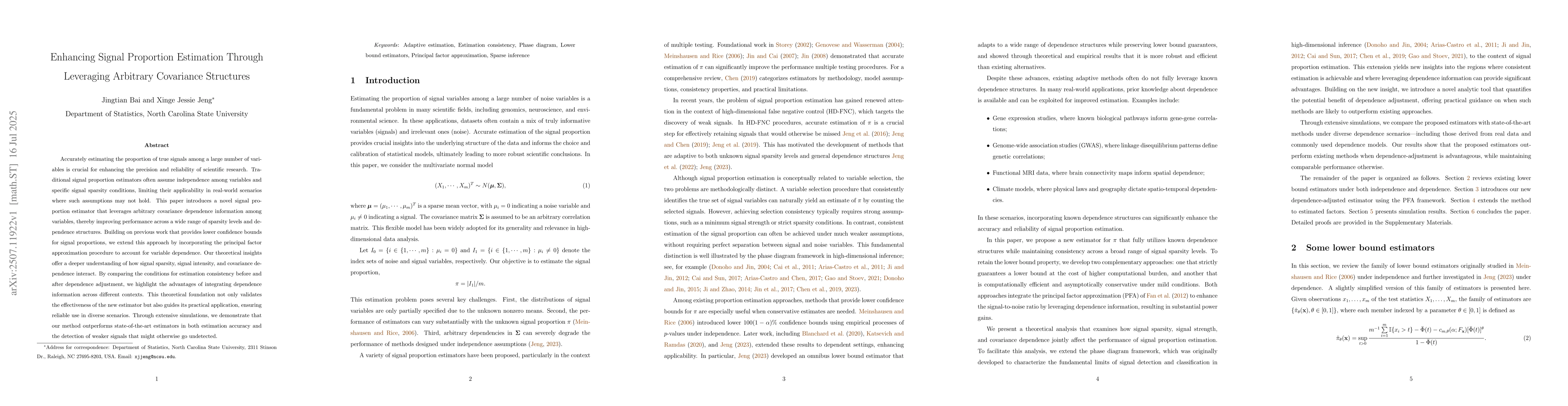 Accurately estimating the proportion of true signals among a large number of variables is crucial for enhancing the precision and reliability of scientific research. Traditional signal proportion estimators often assume independence among variables and specific signal sparsity conditions, limiting their applicability in real-world scenarios where such assumptions may not hold. This paper introduces a novel signal proportion estimator that leverages arbitrary covariance dependence information among variables, thereby improving performance across a wide range of sparsity levels and dependence structures. Building on previous work that provides lower confidence bounds for signal proportions, we extend this approach by incorporating the principal factor approximation procedure to account for variable dependence. Our theoretical insights offer a deeper understanding of how signal sparsity, signal intensity, and covariance dependence interact. By comparing the conditions for estimation consistency before and after dependence adjustment, we highlight the advantages of integrating dependence information across different contexts. This theoretical foundation not only validates the effectiveness of the new estimator but also guides its practical application, ensuring reliable use in diverse scenarios. Through extensive simulations, we demonstrate that our method outperforms state-of-the-art estimators in both estimation accuracy and the detection of weaker signals that might otherwise go undetected.