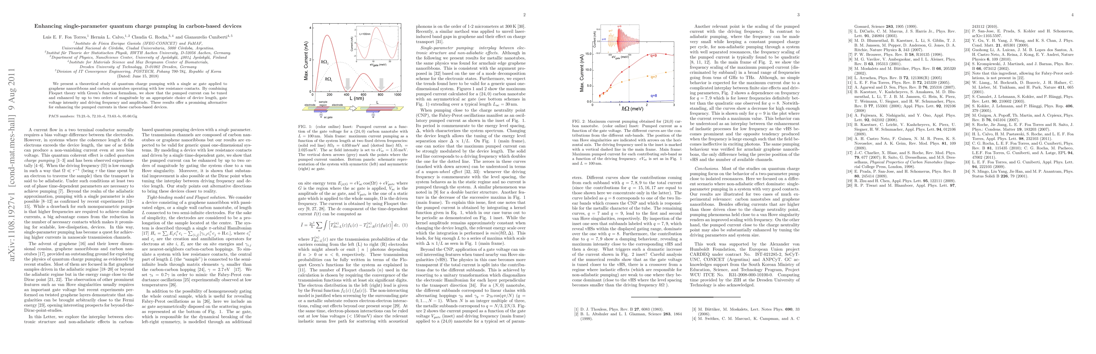 We present a theoretical study of quantum charge pumping with a single ac gate applied to graphene nanoribbons and carbon nanotubes operating with low resistance contacts. By combining Floquet theory with Green's function formalism, we show that the pumped current can be tuned and enhanced by up to two orders of magnitude by an appropriate choice of device length, gate voltage intensity and driving frequency and amplitude. These results offer a promising alternative for enhancing the pumped currents in these carbon-based devices.