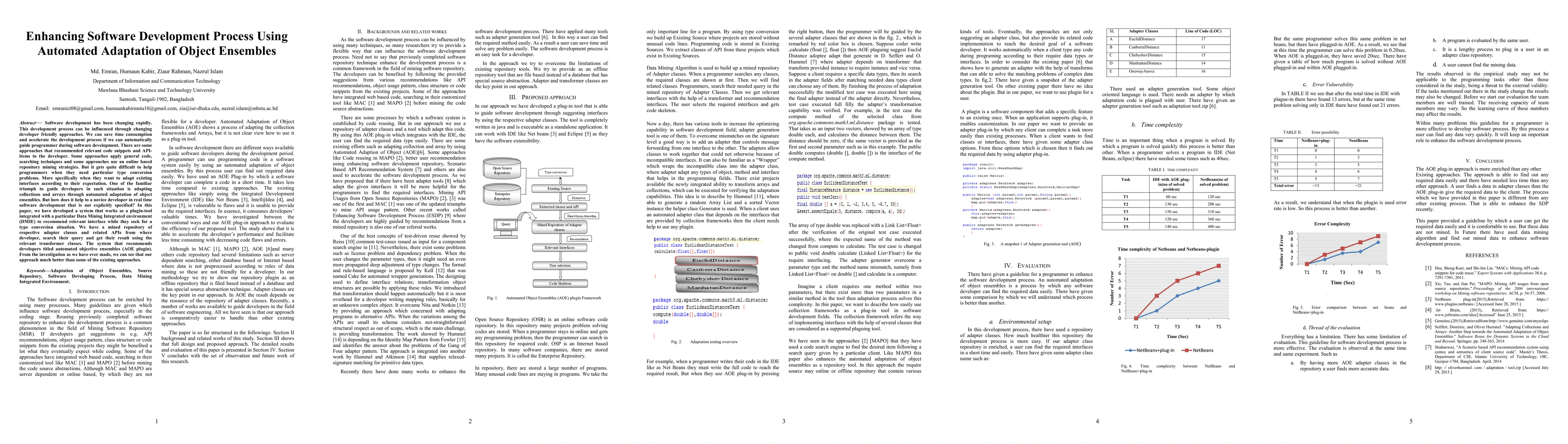 This paper introduces an automated adaptation system, the Automated Objective Ensembles (AOE) plugin, to enhance software development by recommending relevant interfaces for type conversion problems. The system, integrated with a Data Mining Integrated Environment (DMIE), leverages a mined repository of adapter classes and APIs to assist novice developers in real-time, outperforming existing methods.
