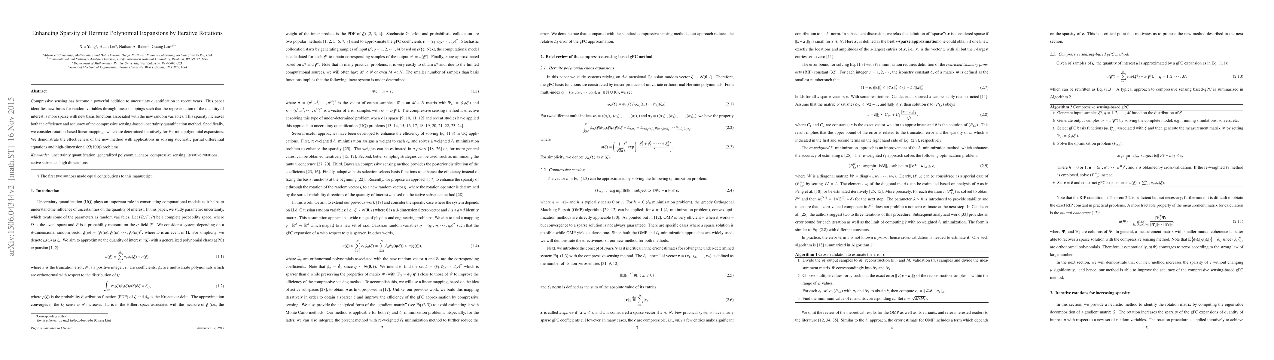 This paper proposes a method to enhance sparsity in Hermite polynomial expansions using iterative rotations, improving the efficiency and accuracy of compressive sensing-based uncertainty quantification. The effectiveness of the method is demonstrated through applications in solving stochastic partial differential equations and high-dimensional problems.
