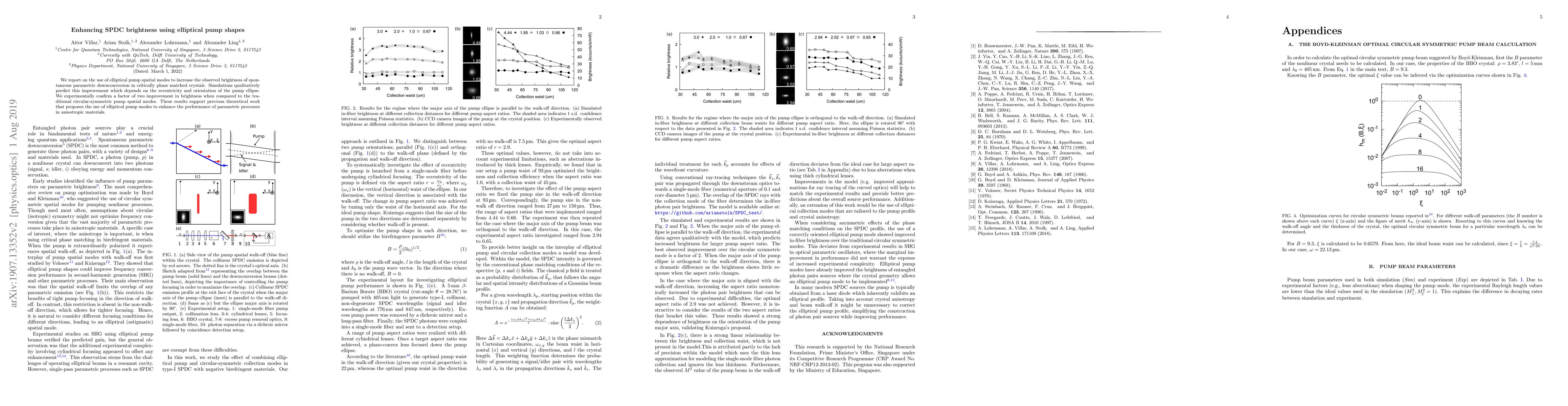This paper demonstrates that elliptical pump spatial modes can double the brightness of spontaneous parametric downconversion in phase-matched crystals compared to circular modes, confirming theoretical predictions and suggesting improved performance in anisotropic materials.
