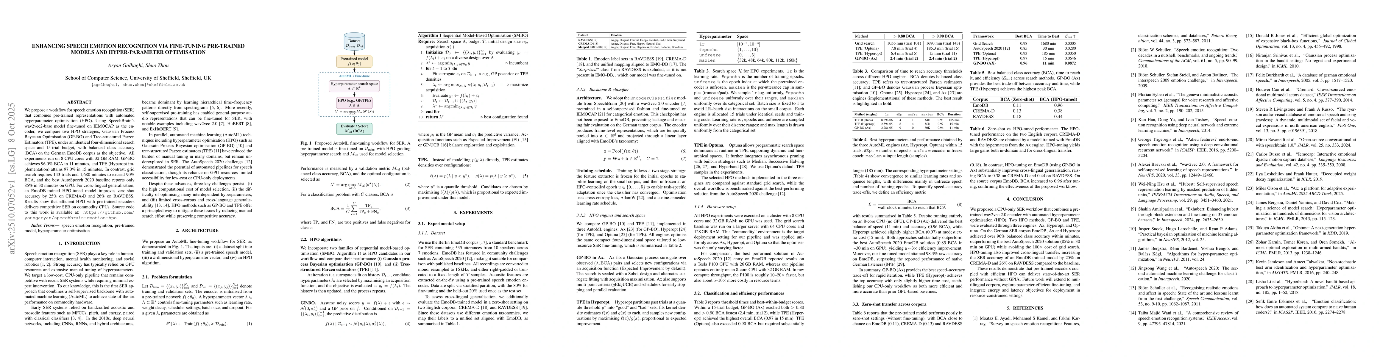 The work combines pre-trained models with advanced HPO techniques (GP-BO and TPE) in a CPU-centric workflow, achieving state-of-the-art SER performance on standard benchmarks while significantly improving cross-lingual transfer capabilities.