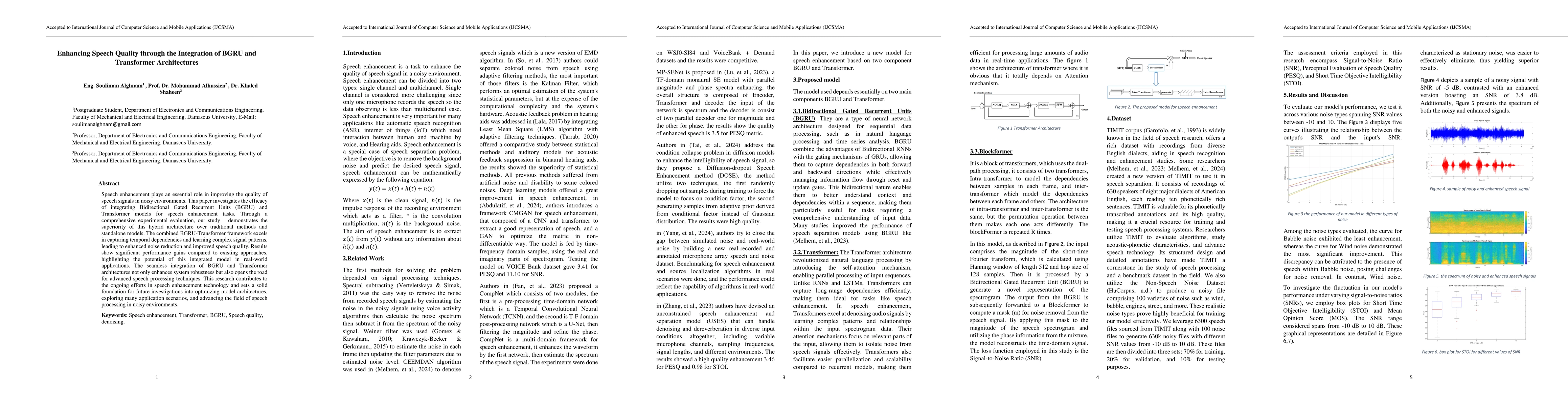The seamless integration of BGRU and Transformer architectures for speech enhancement, effectively capturing temporal dependencies and learning complex signal patterns.