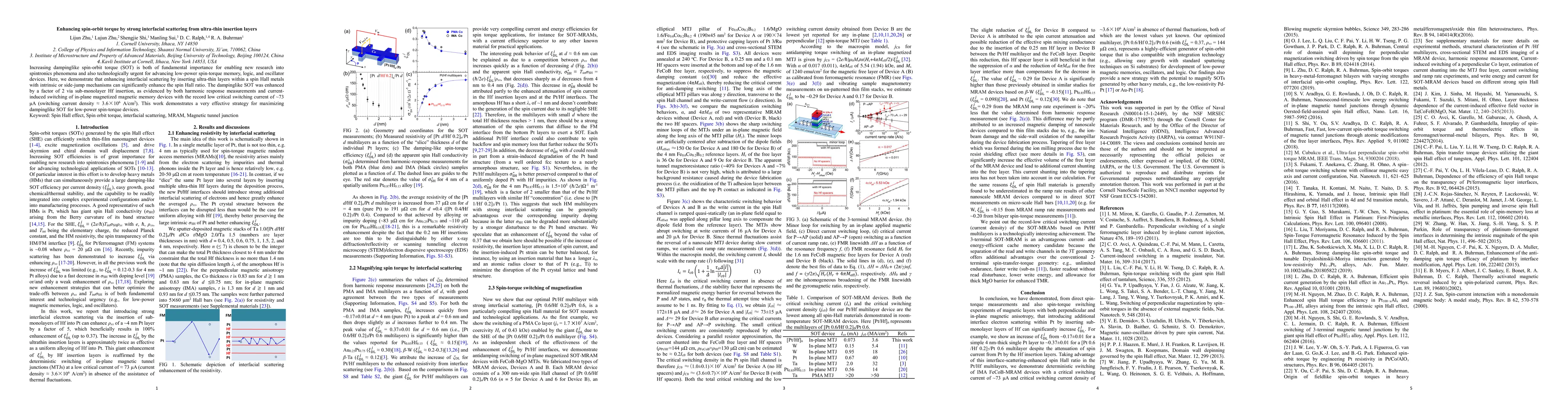 This paper demonstrates that ultra-thin Hf insertion layers significantly enhance dampinglike spin-orbit torque (SOT) via interfacial scattering, achieving a twofold increase in SOT and a record low critical switching current of ~73 uA. This strategy effectively maximizes SOT for low-power spin-torque devices.