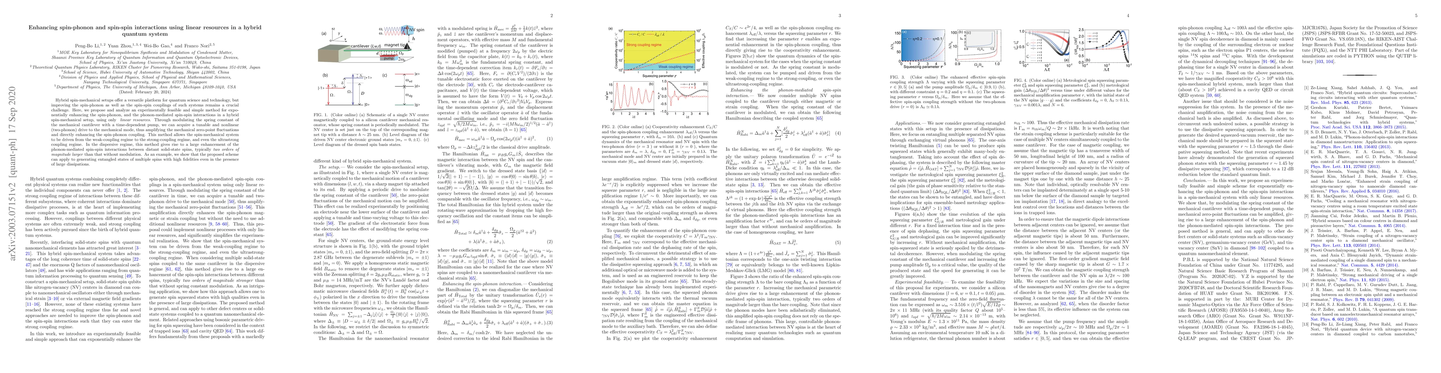 Hybrid spin-mechanical setups offer a versatile platform for quantum science and technology, but improving the spin-phonon as well as the spin-spin couplings of such systems remains a crucial challenge. Here, we propose and analyze an experimentally feasible and simple method for exponentially enhancing the spin-phonon, and the phonon-mediated spin-spin interactions in a hybrid spin-mechanical setup, using only \emph{ linear resources}. Through modulating the spring constant of the mechanical cantilever with a time-dependent pump, we can acquire a tunable and nonlinear (two-phonon) drive to the mechanical mode, thus amplifying the mechanical zero-point fluctuations and directly enhancing the spin-phonon coupling. Our method allows the spin-mechanical system to be driven from the weak-coupling regime to the strong-coupling regime, and even the ultrastrong coupling regime. In the dispersive regime, this method gives rise to a large enhancement of the phonon-mediated spin-spin interaction between distant solid-state spins, typically\emph{two orders of magnitude larger} than that without modulation. As an example, we show that the proposed scheme can apply to generating entangled states of multiple spins with high fidelities even in the presence of large dissipations.