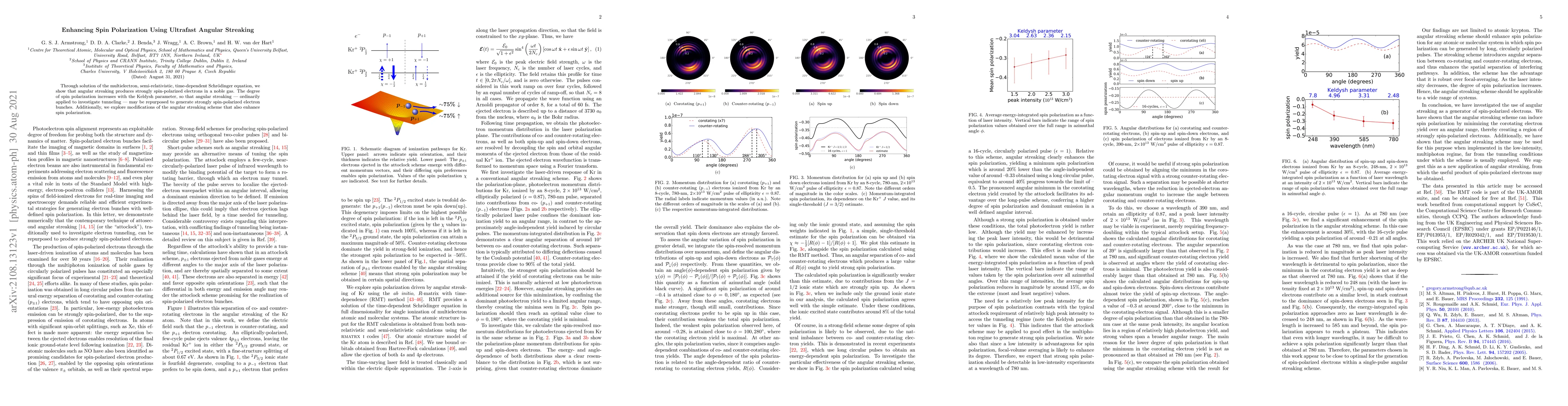 This paper demonstrates that angular streaking can generate strongly spin-polarized electrons in noble gases by solving the multielectron, semi-relativistic, time-dependent Schrödinger equation. The degree of spin polarization is shown to increase with the Keldysh parameter, suggesting a new method for creating polarized electron bunches.