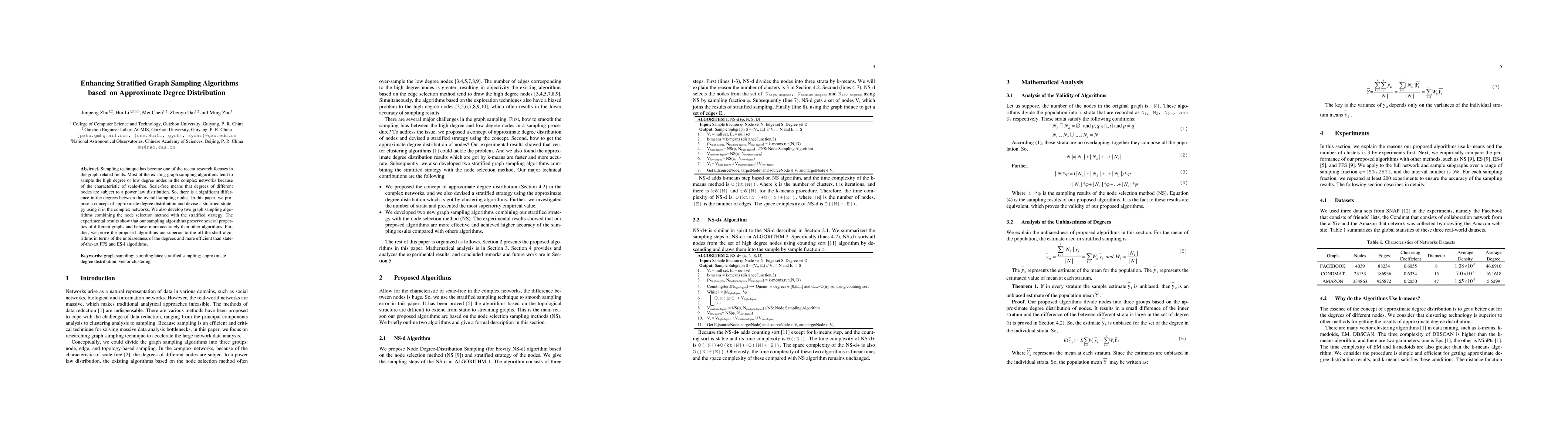 This paper proposes two graph sampling algorithms that improve upon existing methods by focusing on approximate degree distributions, resulting in more accurate and unbiased sampling of complex networks.