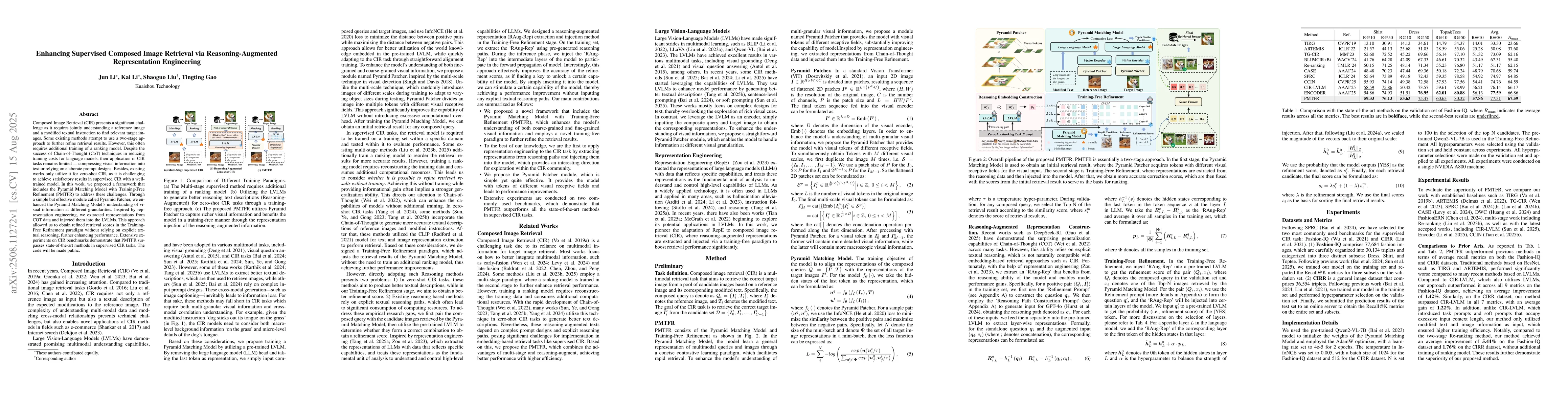 Composed Image Retrieval (CIR) presents a significant challenge as it requires jointly understanding a reference image and a modified textual instruction to find relevant target images. Some existing methods attempt to use a two-stage approach to further refine retrieval results. However, this often requires additional training of a ranking model. Despite the success of Chain-of-Thought (CoT) techniques in reducing training costs for language models, their application in CIR tasks remains limited -- compressing visual information into text or relying on elaborate prompt designs. Besides, existing works only utilize it for zero-shot CIR, as it is challenging to achieve satisfactory results in supervised CIR with a well-trained model. In this work, we proposed a framework that includes the Pyramid Matching Model with Training-Free Refinement (PMTFR) to address these challenges. Through a simple but effective module called Pyramid Patcher, we enhanced the Pyramid Matching Model's understanding of visual information at different granularities. Inspired by representation engineering, we extracted representations from COT data and injected them into the LVLMs. This approach allowed us to obtain refined retrieval scores in the Training-Free Refinement paradigm without relying on explicit textual reasoning, further enhancing performance. Extensive experiments on CIR benchmarks demonstrate that PMTFR surpasses state-of-the-art methods in supervised CIR tasks. The code will be made public.