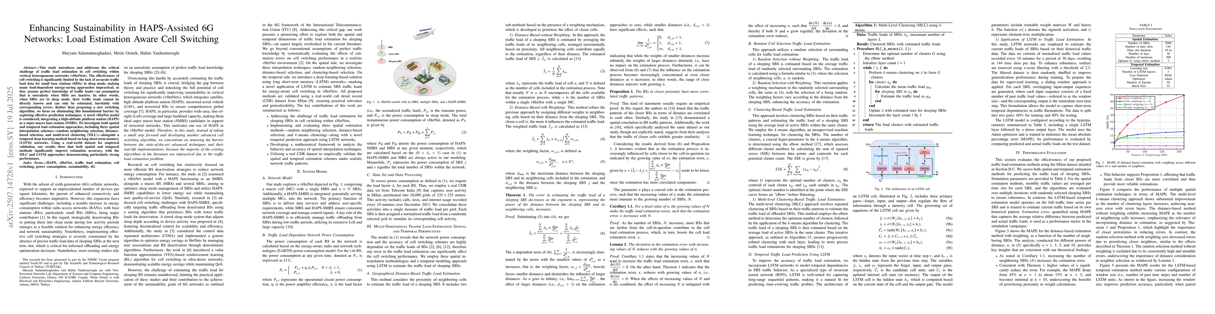 This study introduces and addresses the critical challenge of traffic load estimation in cell switching within vertical heterogeneous networks. The effectiveness of cell switching is significantly limited by the lack of accurate traffic load data for small base stations (SBSs) in sleep mode, making many load-dependent energy-saving approaches impractical, as they assume perfect knowledge of traffic loads, an assumption that is unrealistic when SBSs are inactive. In other words, when SBSs are in sleep mode, their traffic loads cannot be directly known and can only be estimated, inevitably with corresponding errors. Rather than proposing a new switching algorithm, we focus on eliminating this foundational barrier by exploring effective prediction techniques. A novel vertical heterogeneous network model is considered, integrating a high-altitude platform station (HAPS) as a super macro base station (SMBS). We investigate both spatial and temporal load estimation approaches, including three spatial interpolation schemes, random neighboring selection, distance based selection, and multi level clustering (MLC), alongside a temporal deep learning method based on long short-term memory (LSTM) networks. Using a real world dataset for empirical validation, our results show that both spatial and temporal methods significantly improve estimation accuracy, with the MLC and LSTM approaches demonstrating particularly strong performance.