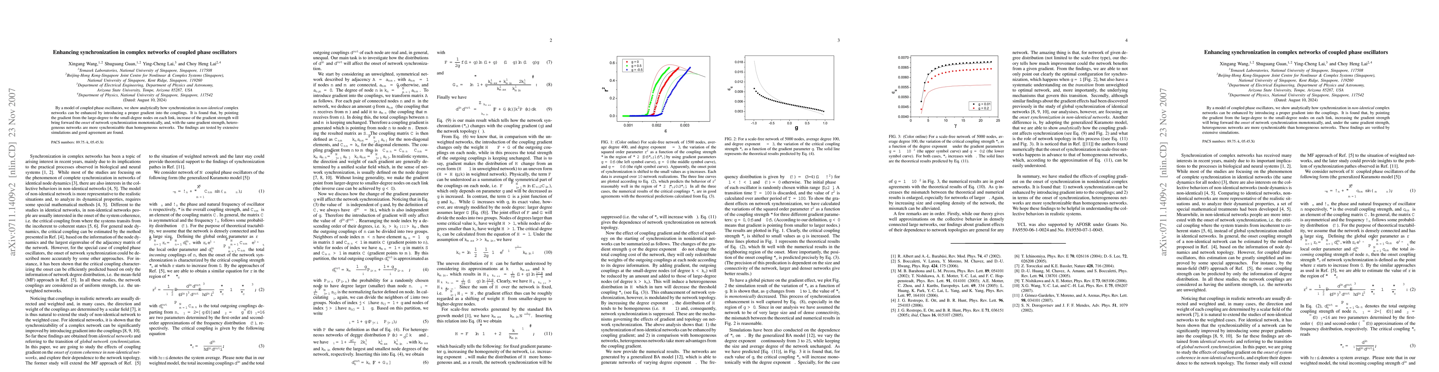 This paper analytically demonstrates how synchronization in non-identical complex networks of coupled phase oscillators can be enhanced by introducing a gradient in the couplings, particularly from high-degree to low-degree nodes. The study finds that stronger gradients lead to earlier synchronization onset, with heterogeneous networks showing greater synchronizability than homogeneous ones, as verified by simulations.