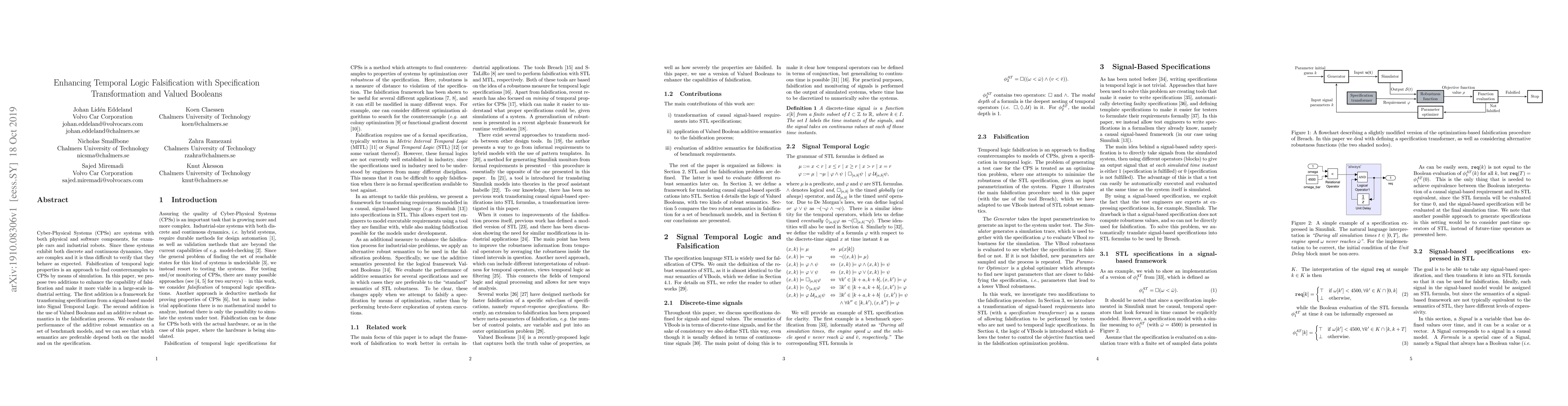 This paper proposes enhancements to temporal logic falsification for verifying Cyber-Physical Systems (CPSs). It introduces a framework for transforming signal-based specifications into Signal Temporal Logic and employs Valued Booleans with additive robust semantics to improve the falsification process, demonstrating variable performance across different models and specifications.