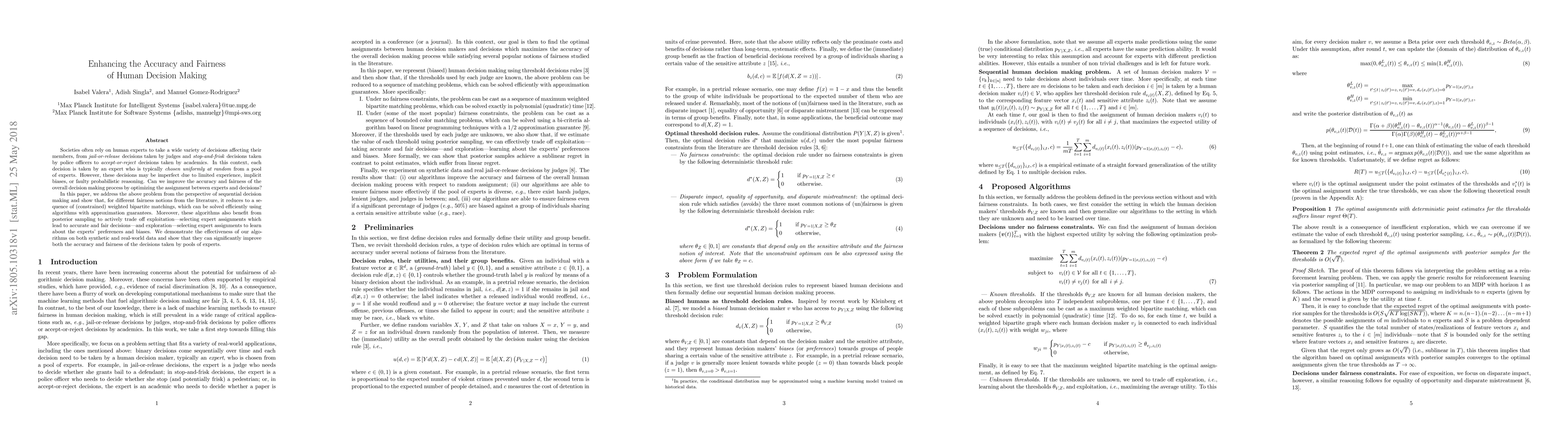 This research paper proposes algorithms to optimize expert decision making, improving accuracy and fairness through efficient weighted bipartite matchings and posterior sampling, leading to significant improvements in real-world data scenarios.