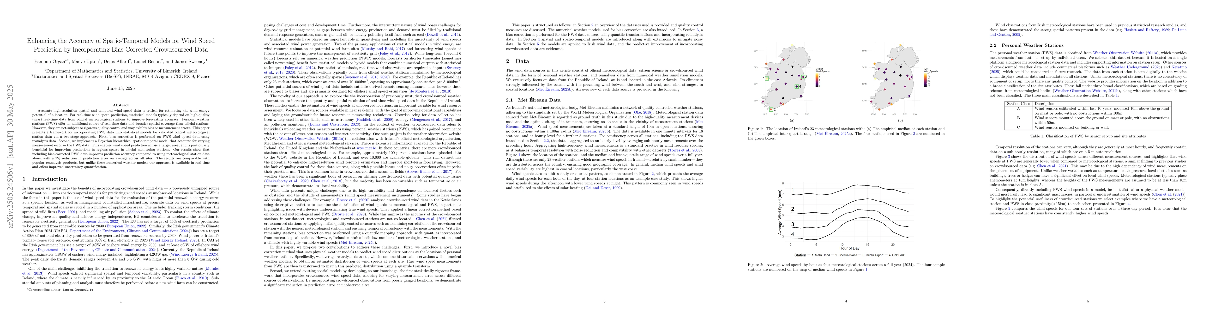 A novel framework for integrating bias-corrected crowdsourced data from personal weather stations into spatio-temporal models for wind speed prediction, enhancing forecast accuracy.