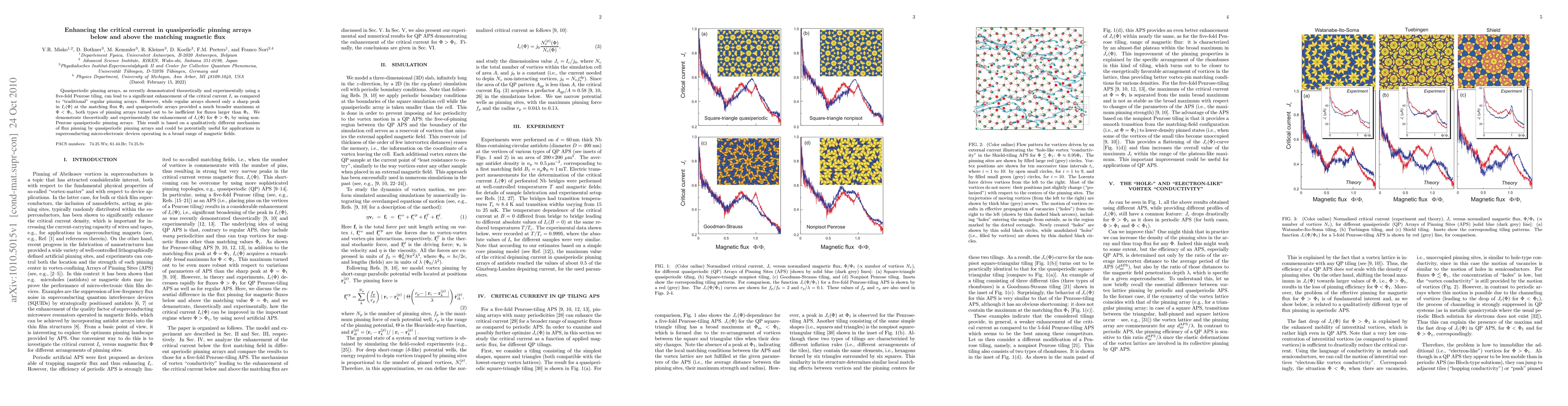 Ic(Phi) at the matching flux Phi1 and quasiperiodic arrays provided a much